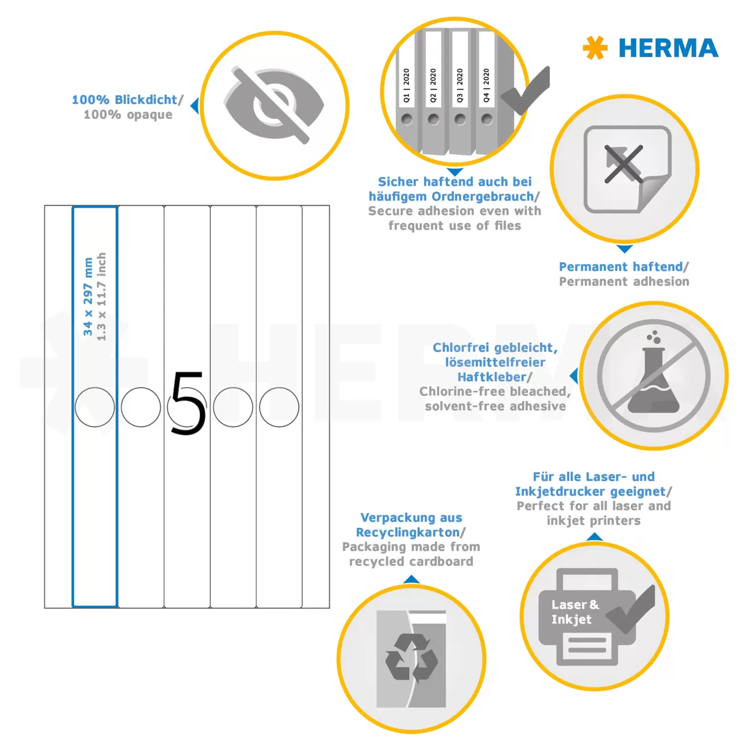 Étiquettes pour classeur suspendus A4, 34 x 297 mm, blanches, opaques, adhérence permanente, pour cl
