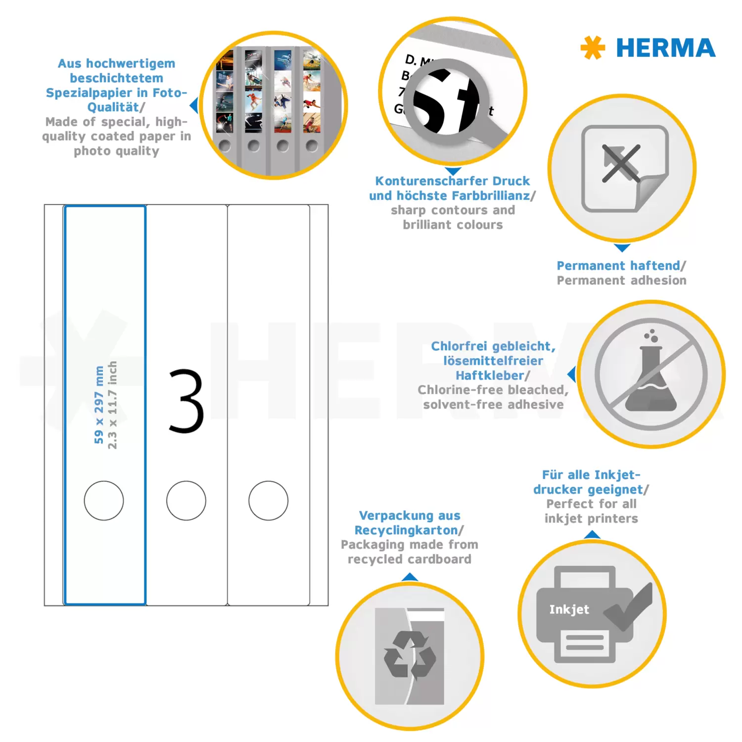 Étiquettes classeurs jet d'encre, A4, 61 x297 mm, blanches, adhérence permanente, pour classeurs lar