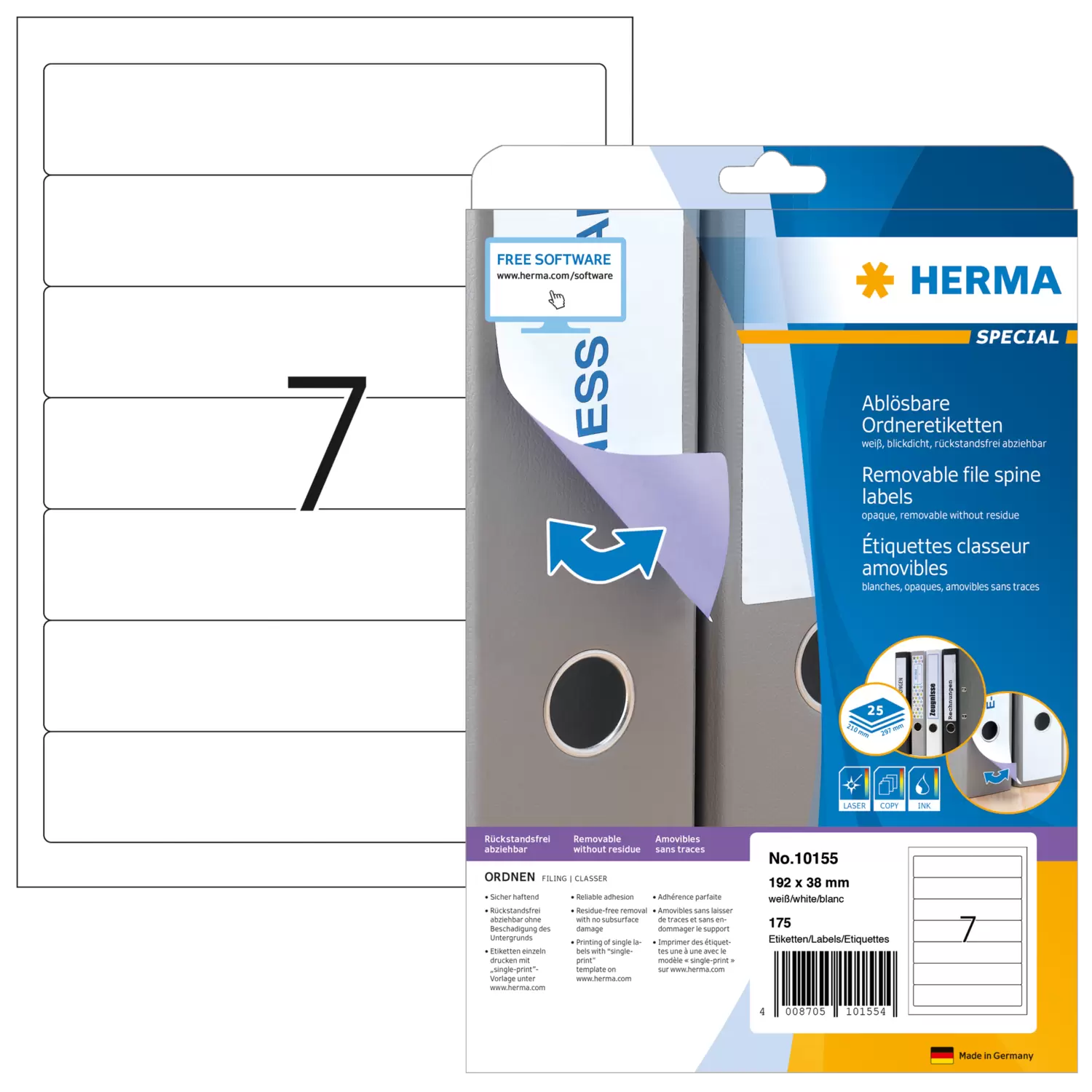Étiquettes classeur amovibl., A4, 192 x 38 mm, blanches, opaques, pour les classeurs étroits (court)