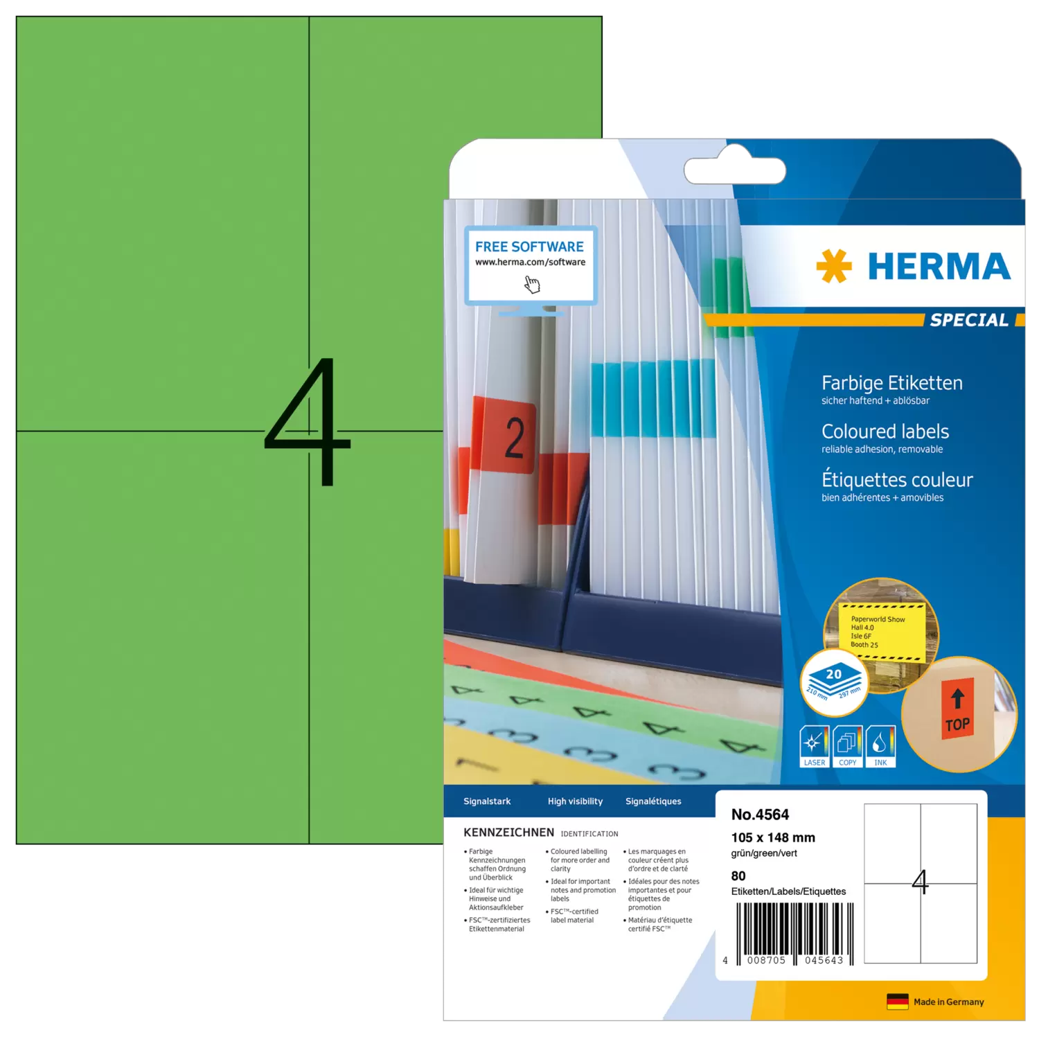Étiquettes couleur, A4, 105 x 148 mm, vertes, amovibles