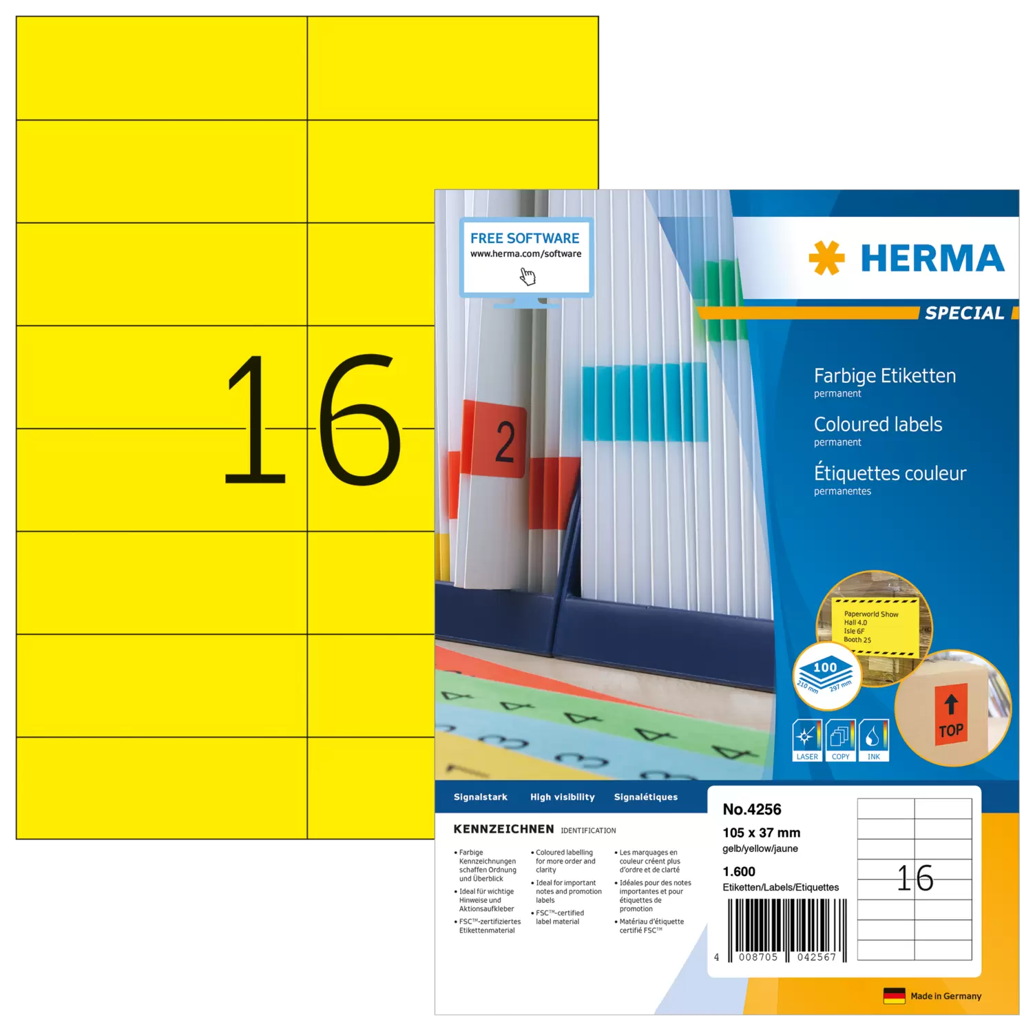 - Pour des indications sur les documents, échantillons et papiers d'expédition, comme autocollants de promotion, pour les marq uages dans l'entrepôt et la logistique, pour les codages couleur.