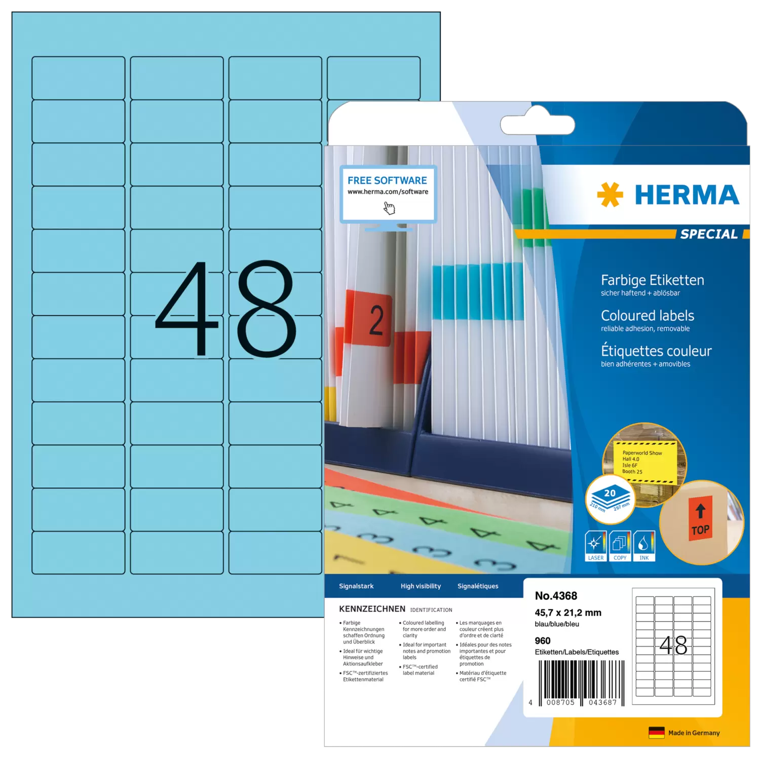 Étiquettes couleur, A4, 45,7 x 21,2 mm, bleues, amovibles