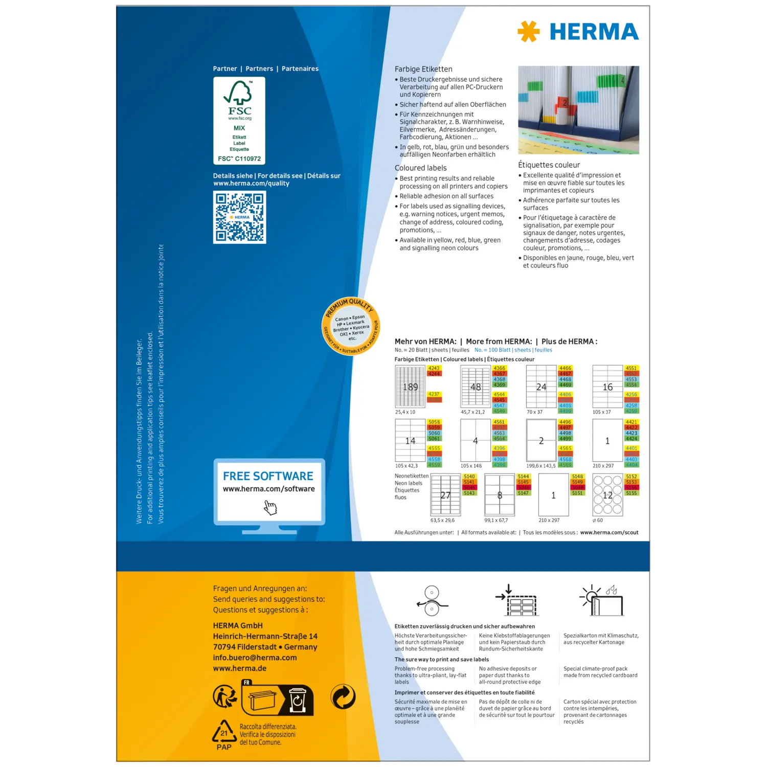 - Pour des indications sur les documents, échantillons et papiers d'expédition, comme autocollants de promotion, pour les marq uages dans l'entrepôt et la logistique, pour les codages couleur.