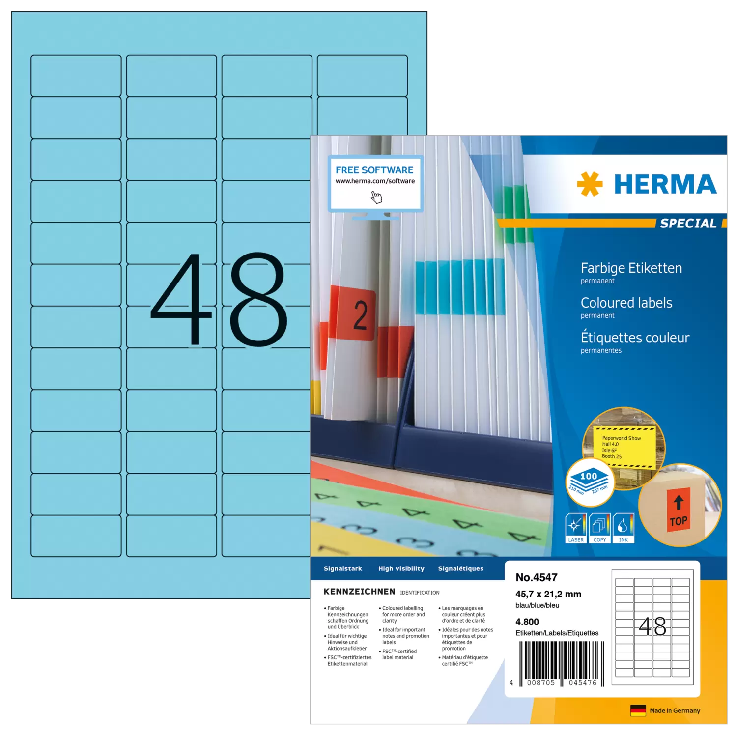 Étiquettes couleur, A4, 45,7 x 21,2 mm, bleues, adhérence permanente