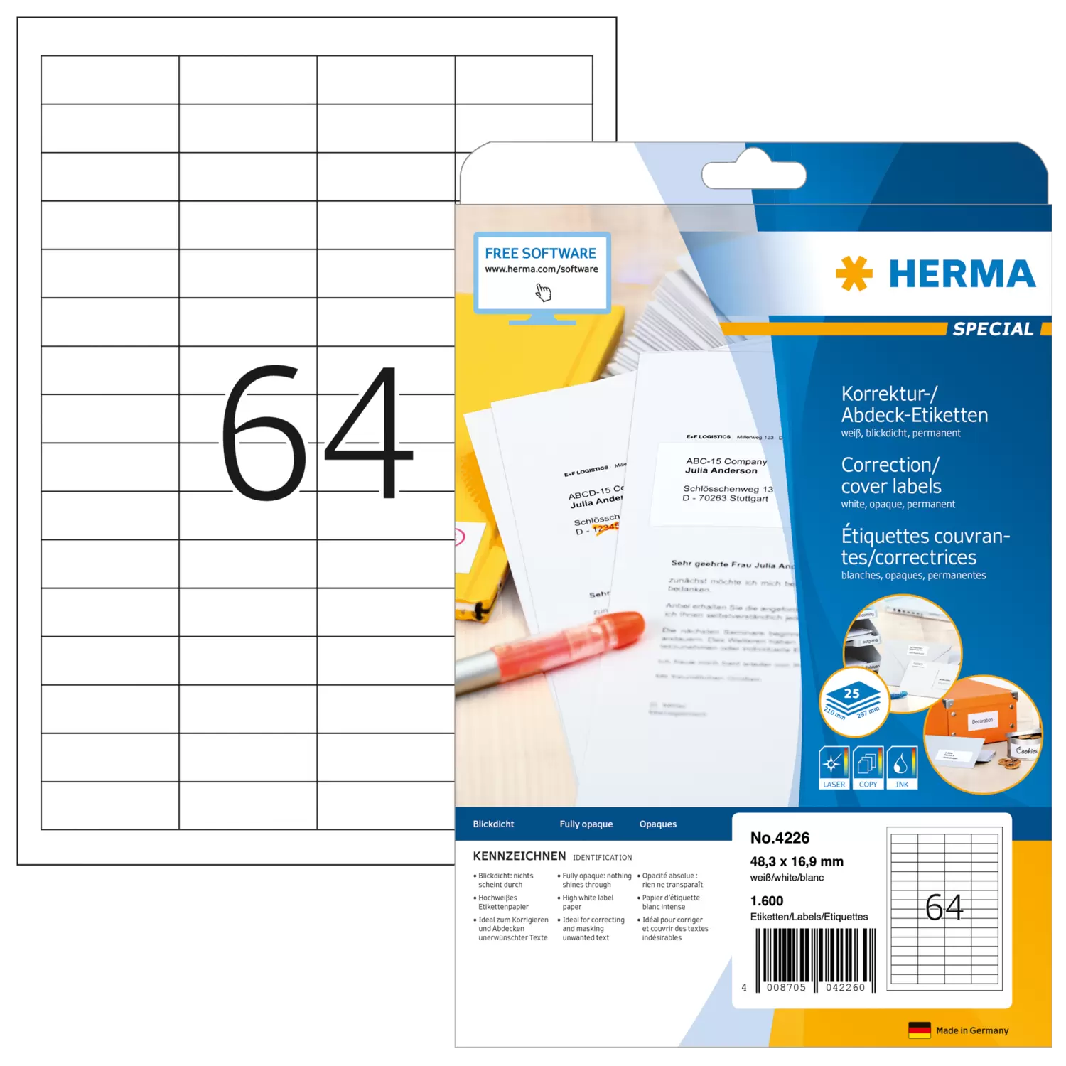 Étiquettes correctrices/couvrantes, A4, 48,3 x 16,9 mm, blanches, opaques, adhérence permanente