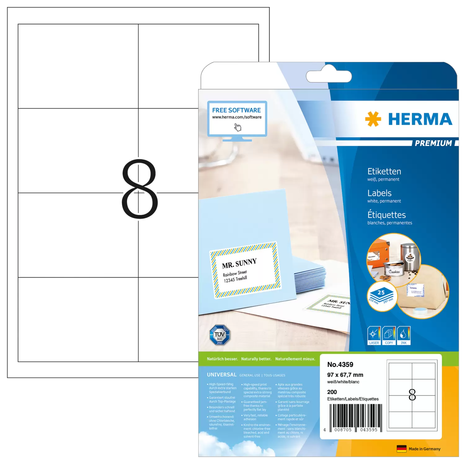 Étiquettes PREMIUM, A4, 97 x 67,7 mm, blanches, adhérence permanente