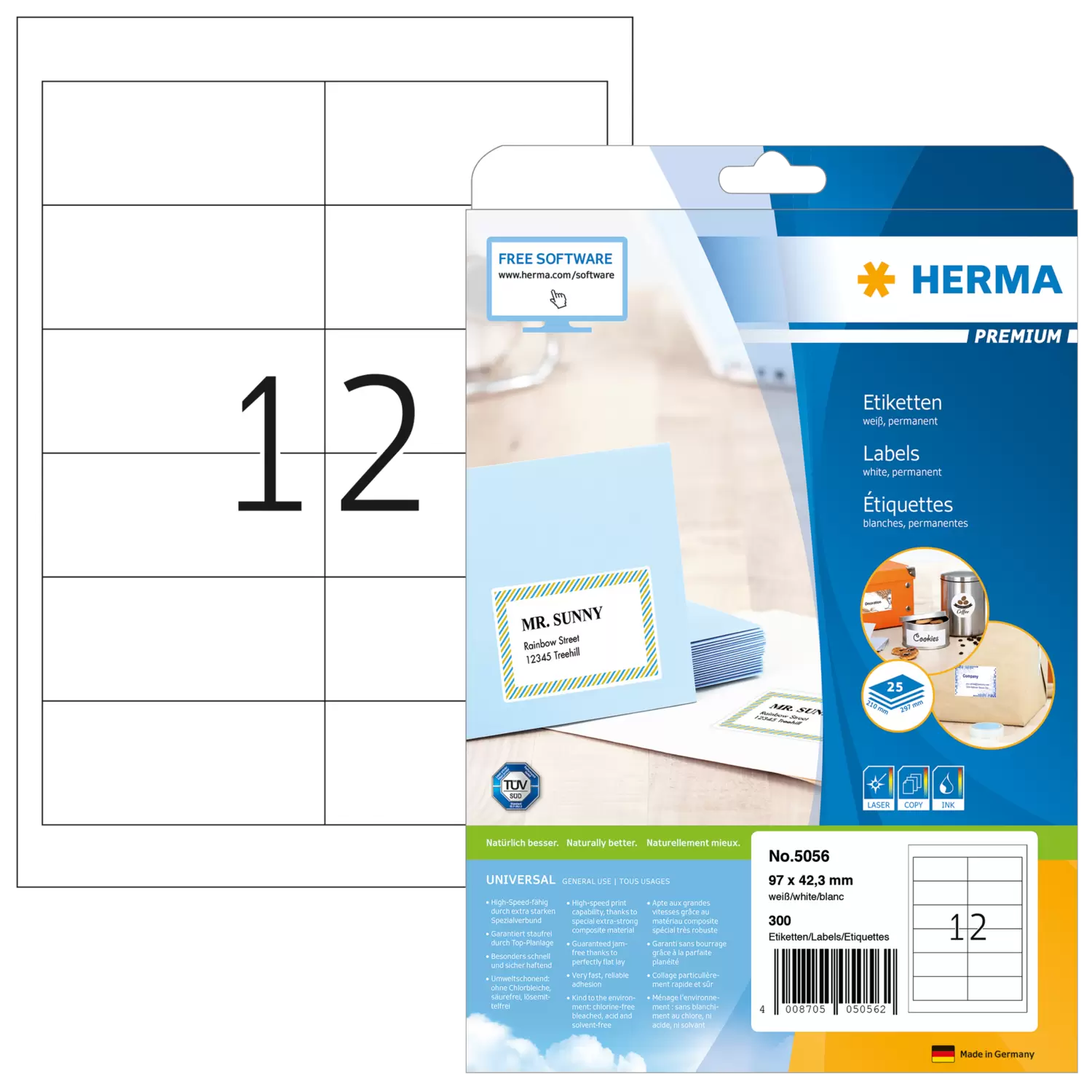 Étiquettes PREMIUM, A4, 97 x 42,3 mm, blanches, adhérence permanente