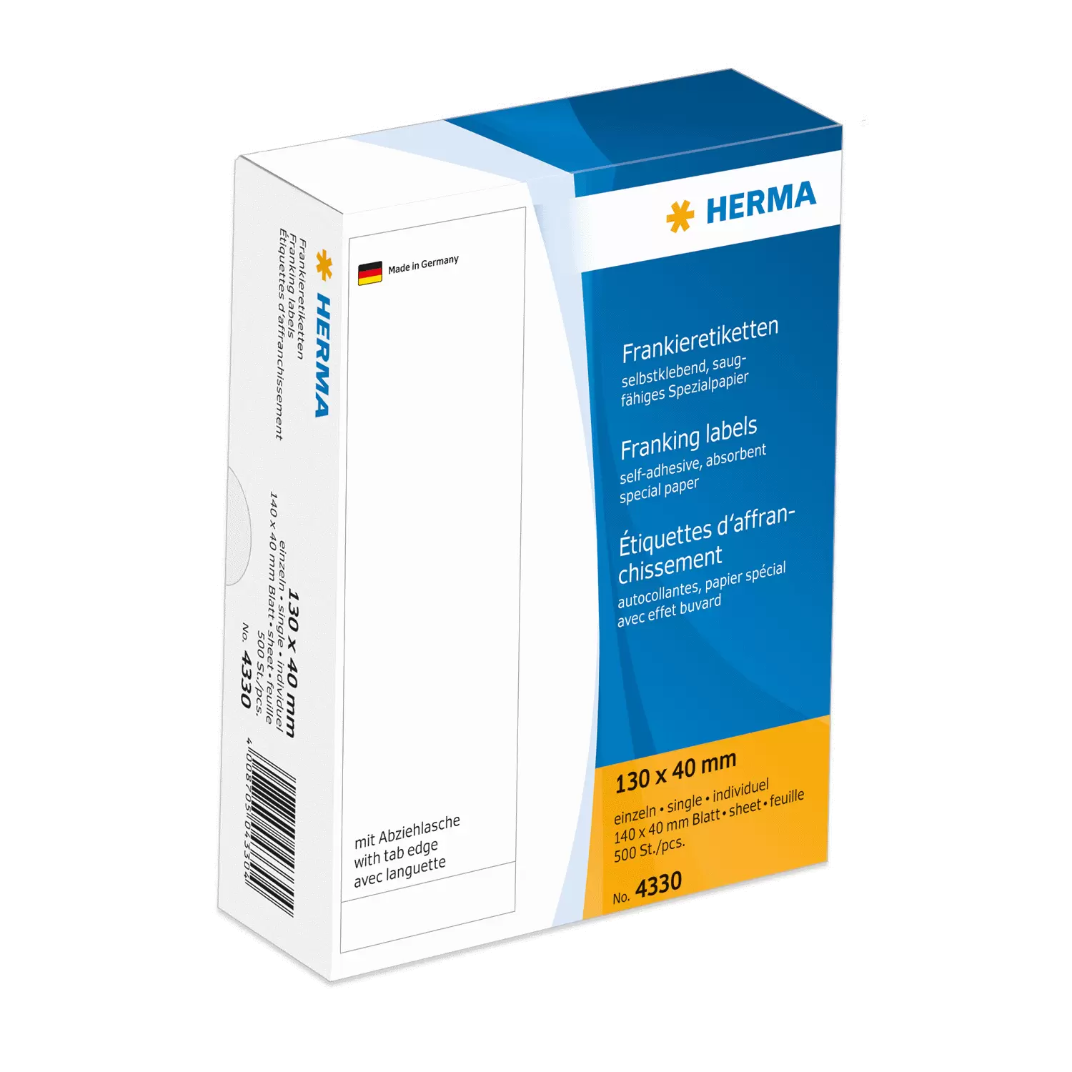 Étiquettes d'affranchissement, avec languette de décollement, 130 x 40 mm, permanentes