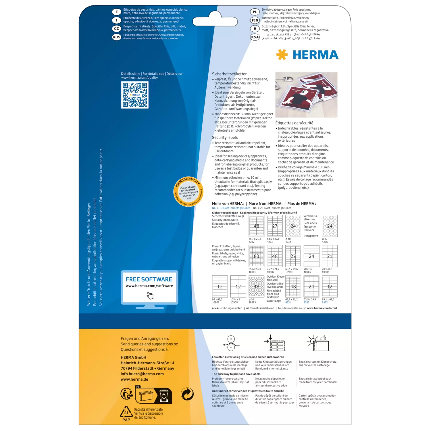 Veuillez noter qu’en raison de leur matériau, les étiquettes de sécurité conviennent exclusivement aux imprimantes laser et aux photocopieuses et non aux imprimantes à jet d’encre.