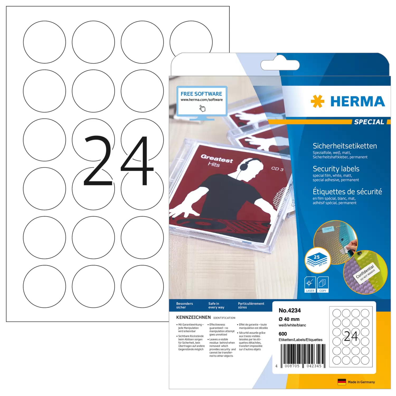 Étiquettes de sécurité, en film spécial anti-fraude, A4, Ø 40 mm, ultra-adhérentes