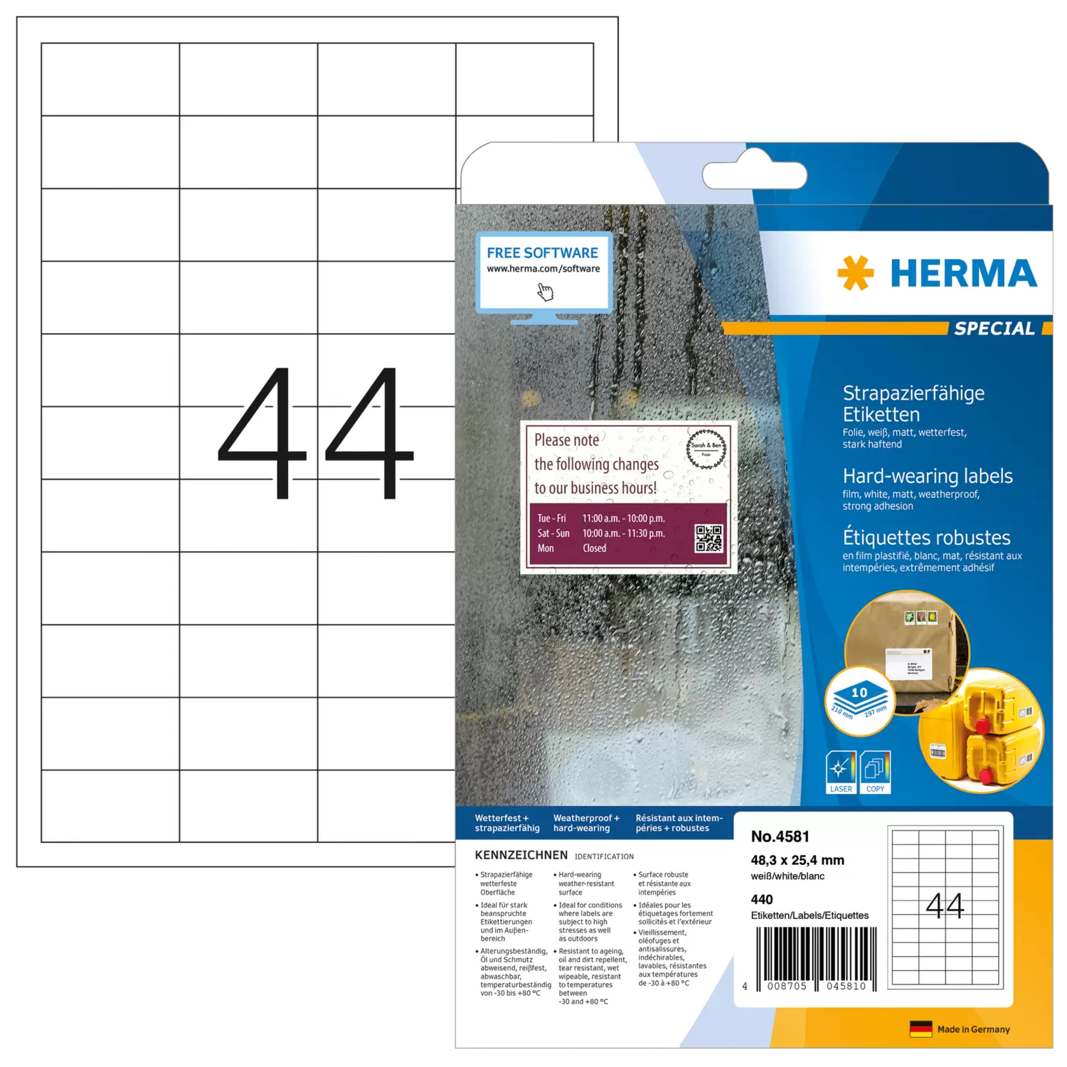 - Idéales pour les marquages dans l'entrepôt, la production & l'atelier, comme étiquettes à code-barres, plaques indicatrices, pour marquer les possessions et les inventaires
