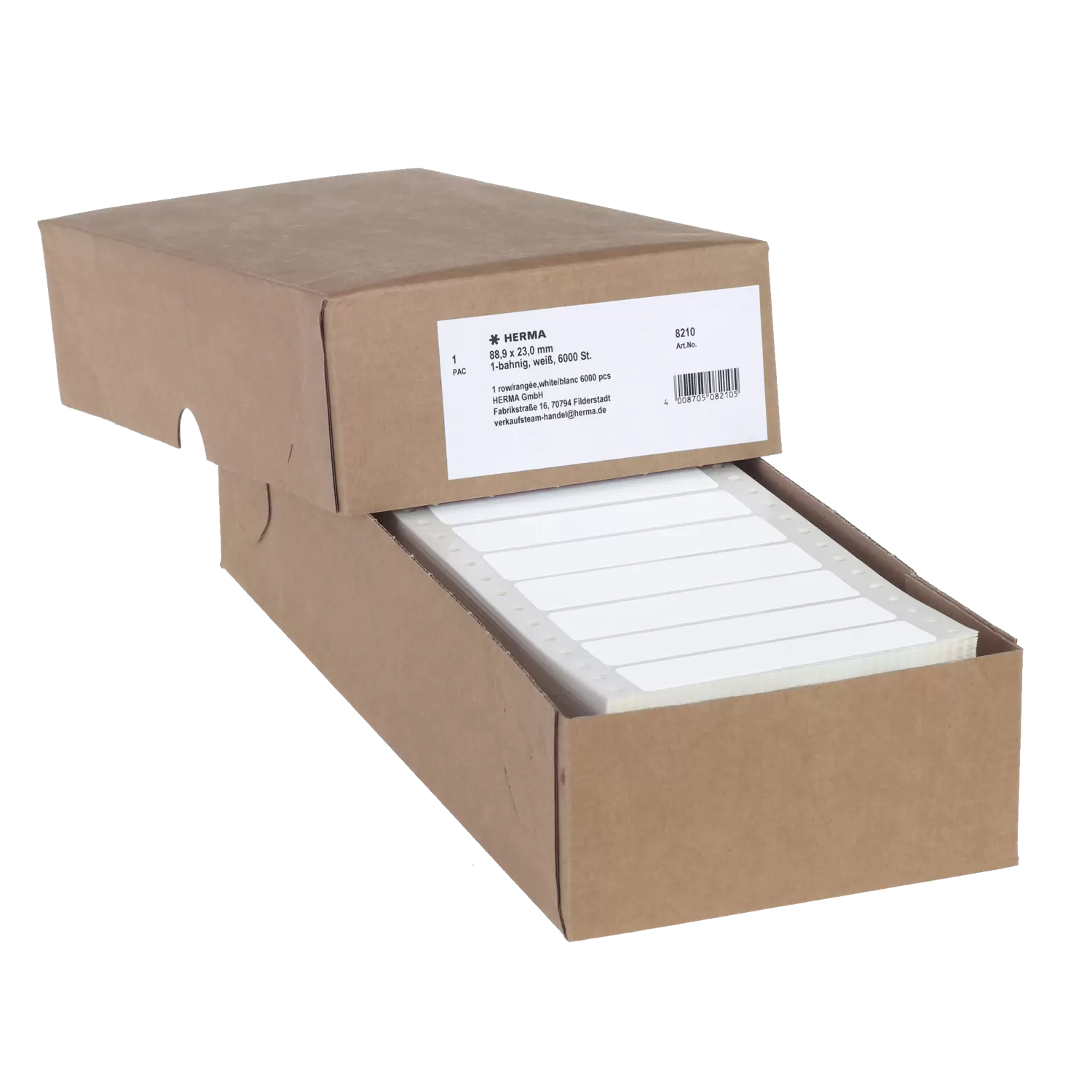 Étiquettes pour l'ordinateur en continu, 88,9 x 23,0 mm, 1 bande, blanches, adhérence permanente