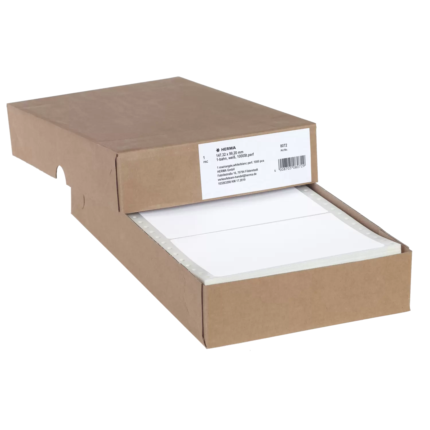 Étiquettes pour l'ordinateur en continu, 147,32 x 99,2 mm, 1 bande, blanches, perforées, adhérence p