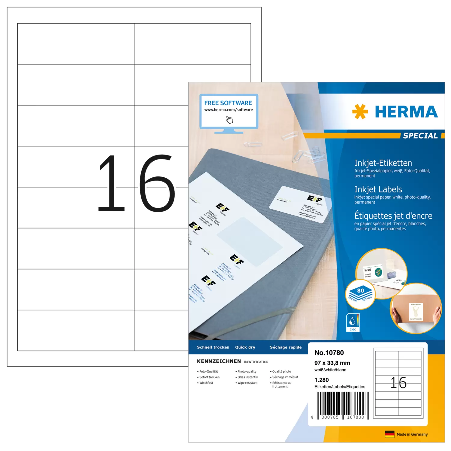 Étiquettes jet d'encre, A4, 97 x 33,8 mm, blanches, adhérence permanente