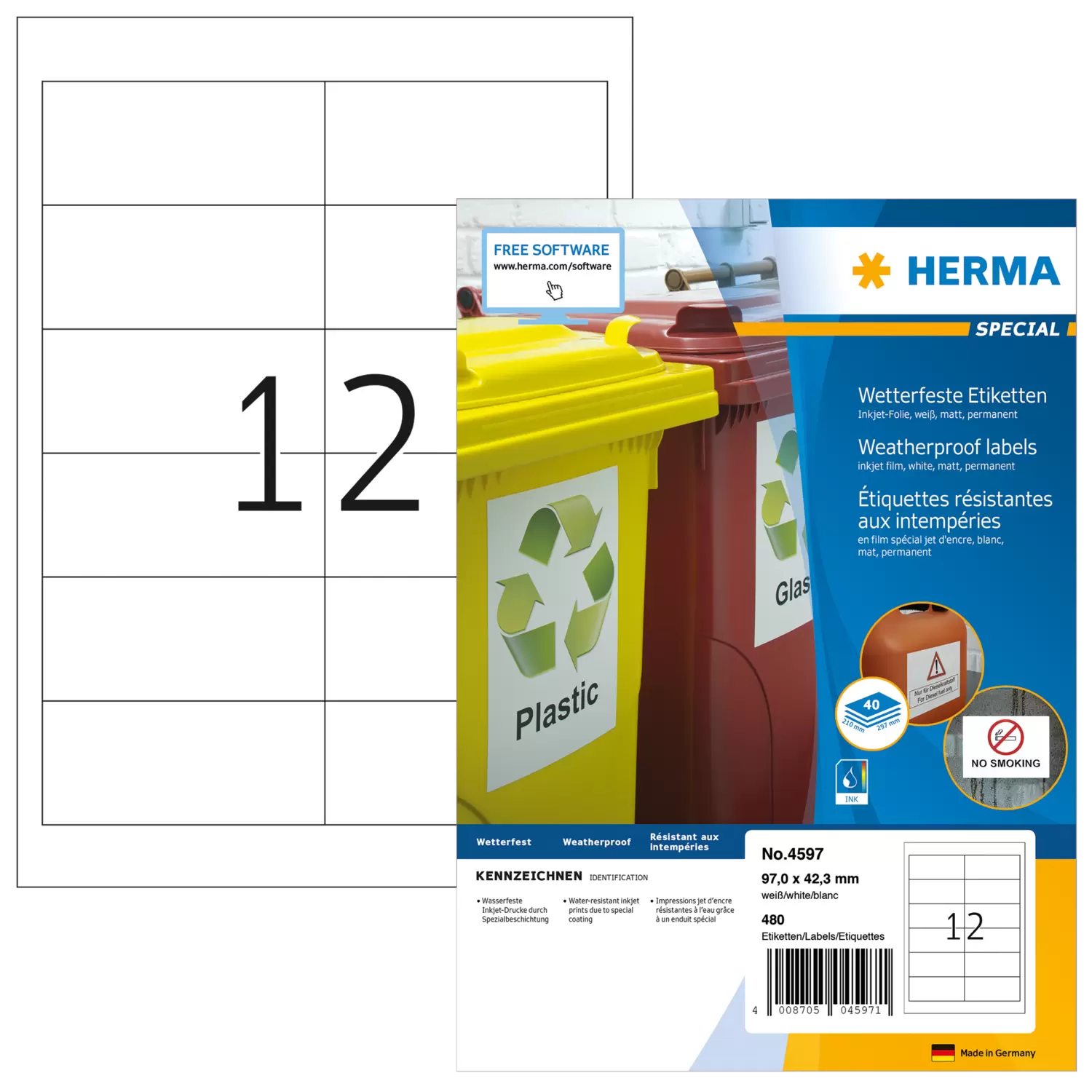 Étiquettes jet d'encre, A4, 97 x 42,3 mm, blanches, synthétique, résistant aux intempéries