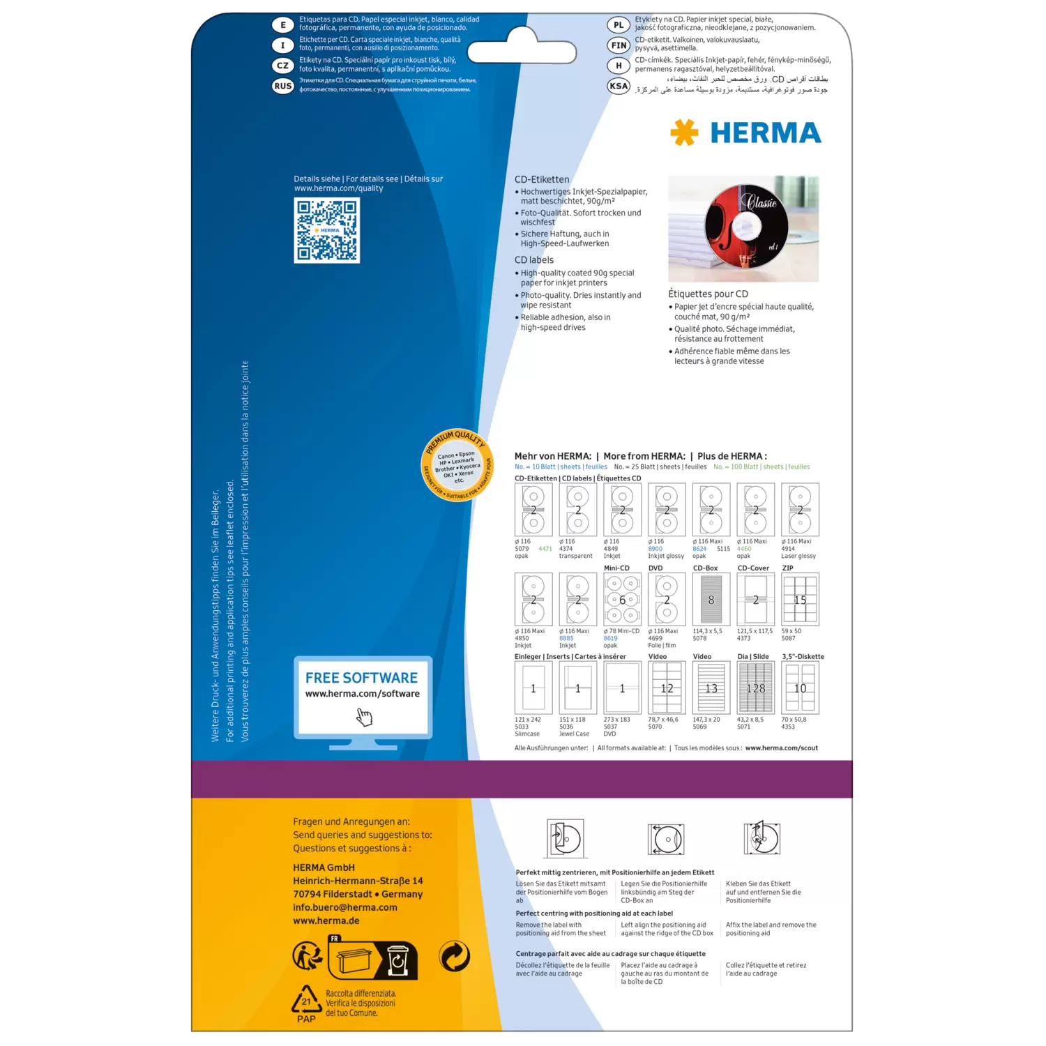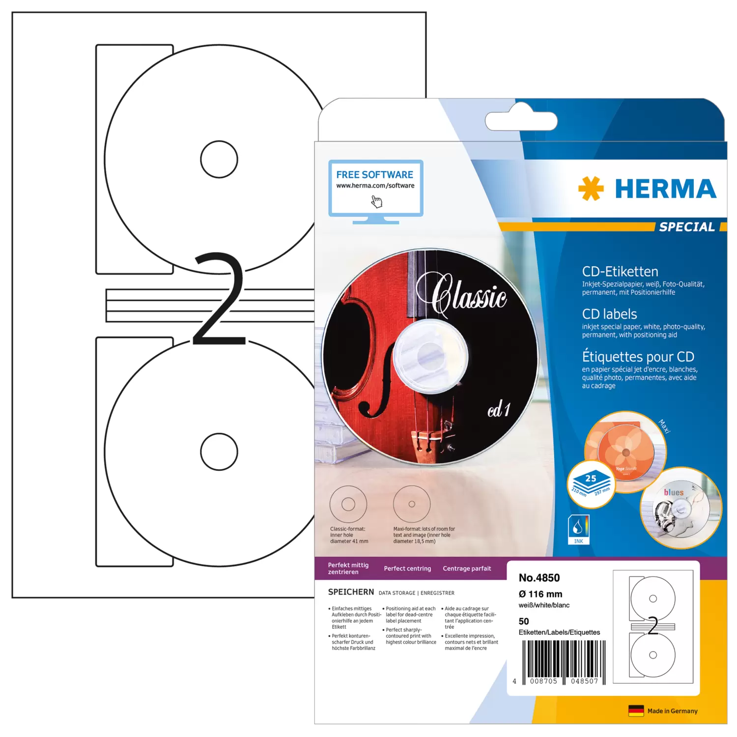 Étiquettes CD surglacées, A4, Maxi, Ø 116 mm, pour imprimantes á jet d'encre, adhérence permanente