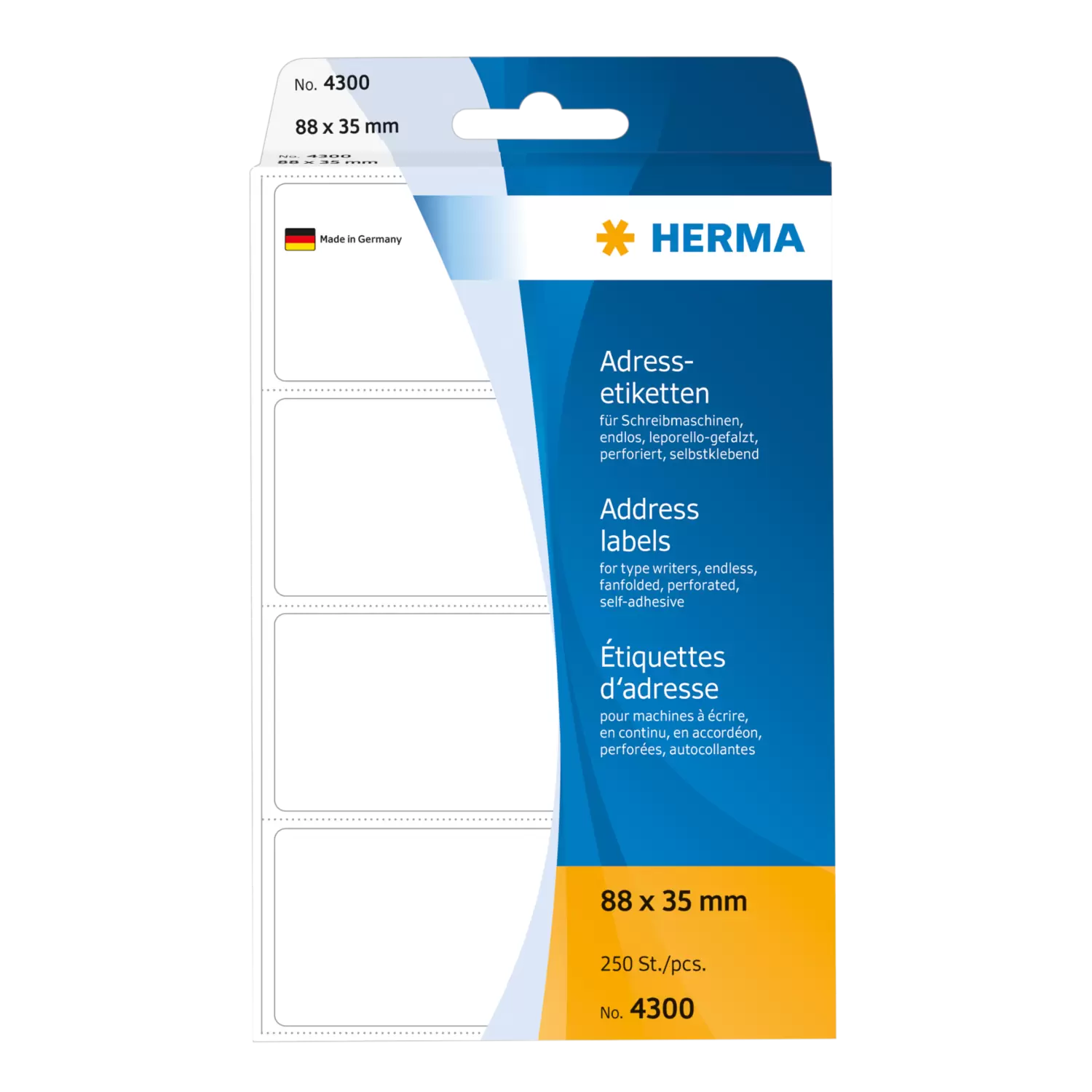 Étiquettes d'adresse pour machines à écrire, en accordéon, 88 x 35 mm, blanches, permanentes