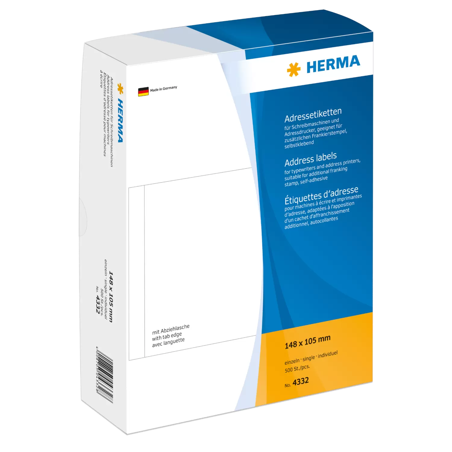 Étiquettes d'adresse pour machines à écrire, individuelles, A4, 148 x 105 mm, blanches, permanentes