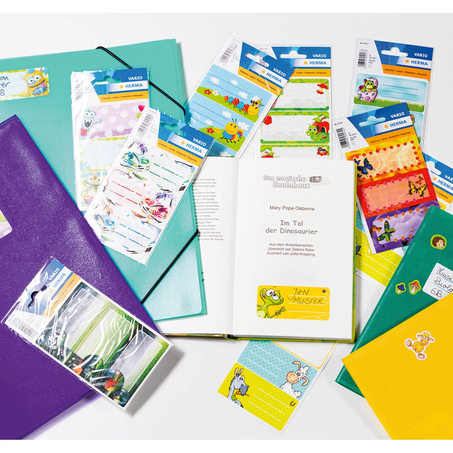 Avec ces étiquettes scolaires intelligentes et colorées, faites de papier inscriptible du fabricant de marque HERMA, marquer et étiqueter les livres et les cahiers est vraiment amusant. Les autocollants permettent d'identifier clairement l'enfant, même si la plupart des livrets ou des couvertures de livre sont identiques au sein d'une même classe. Les nombreux motifs et dessins différents correspondent aux préférences ou aux passe-temps des élèves. Les étiquettes nominatives sont particulièrement adaptées aux couvertures de livrets HERMA en plastique ou en papier.