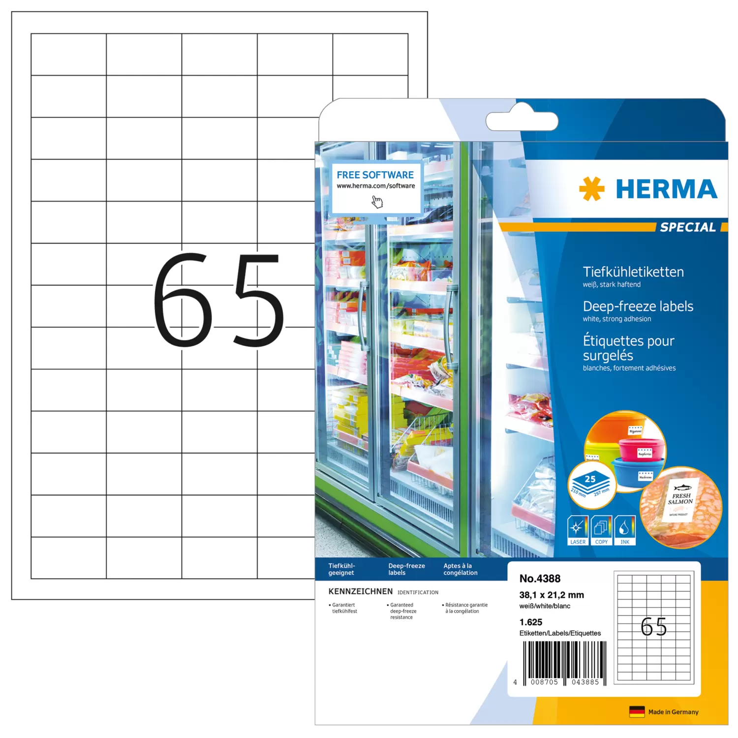 Étiquettes pour surgelés, A4, 38,1 x 21,2 mm, blanches