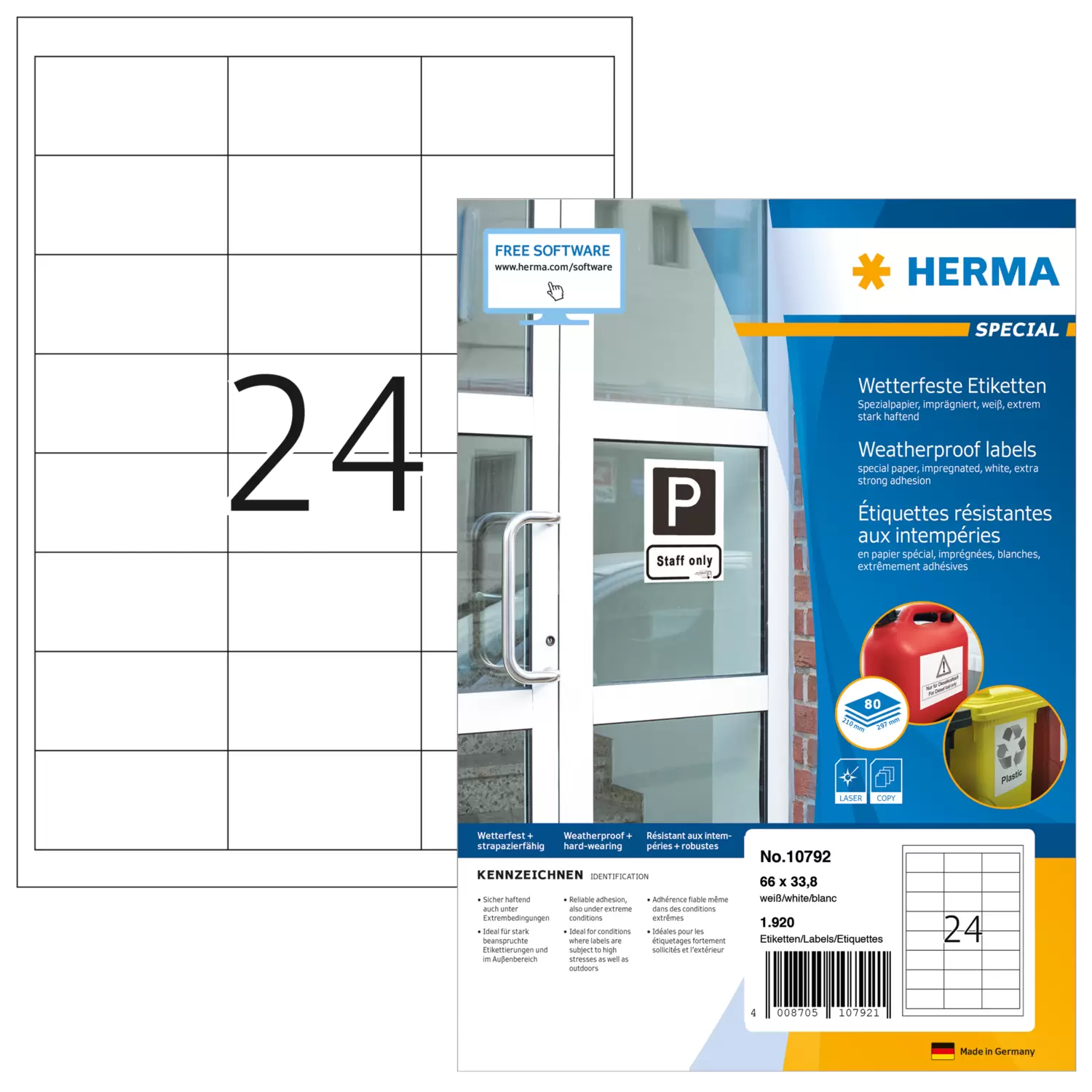 Étiquettes résistantes aux intempéries, A4, 66 x 33,8 mm, blanches, ultra-adhérentes, imprégnées