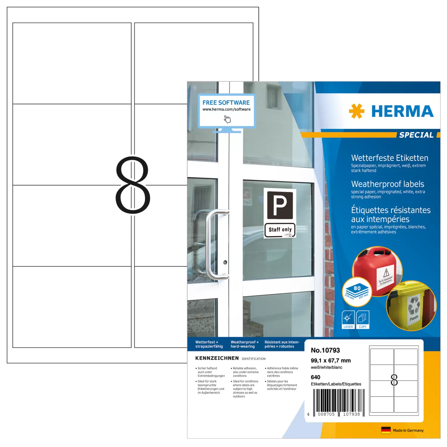 Étiquettes résistantes aux intempéries, A4, 99,1 x 67,7 mm, blanches, ultra-adhérentes, imprégnées