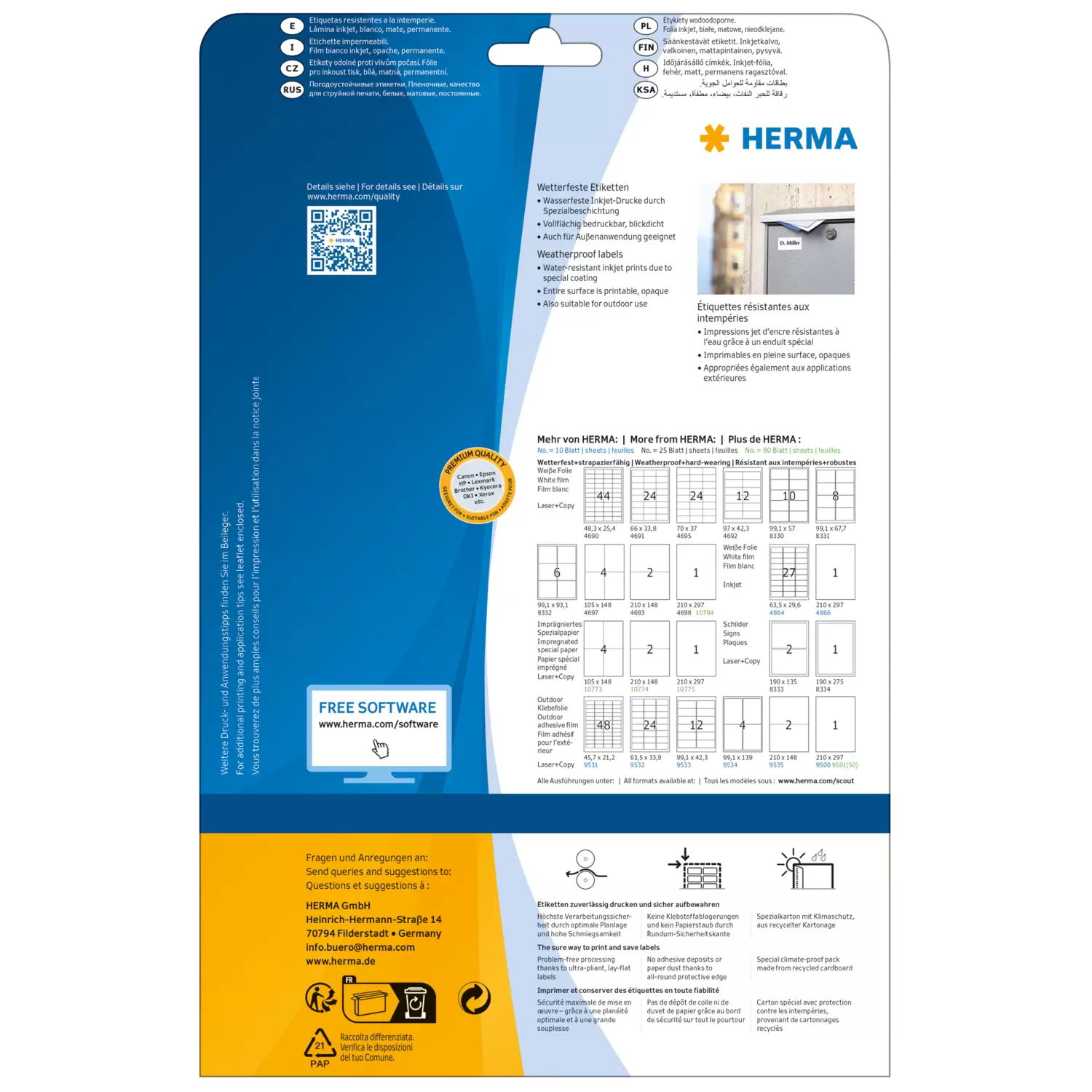 Étiquettes jet d'encre, A4, 210 x 297 mm, blanches, synthétique, résistant aux intempéries