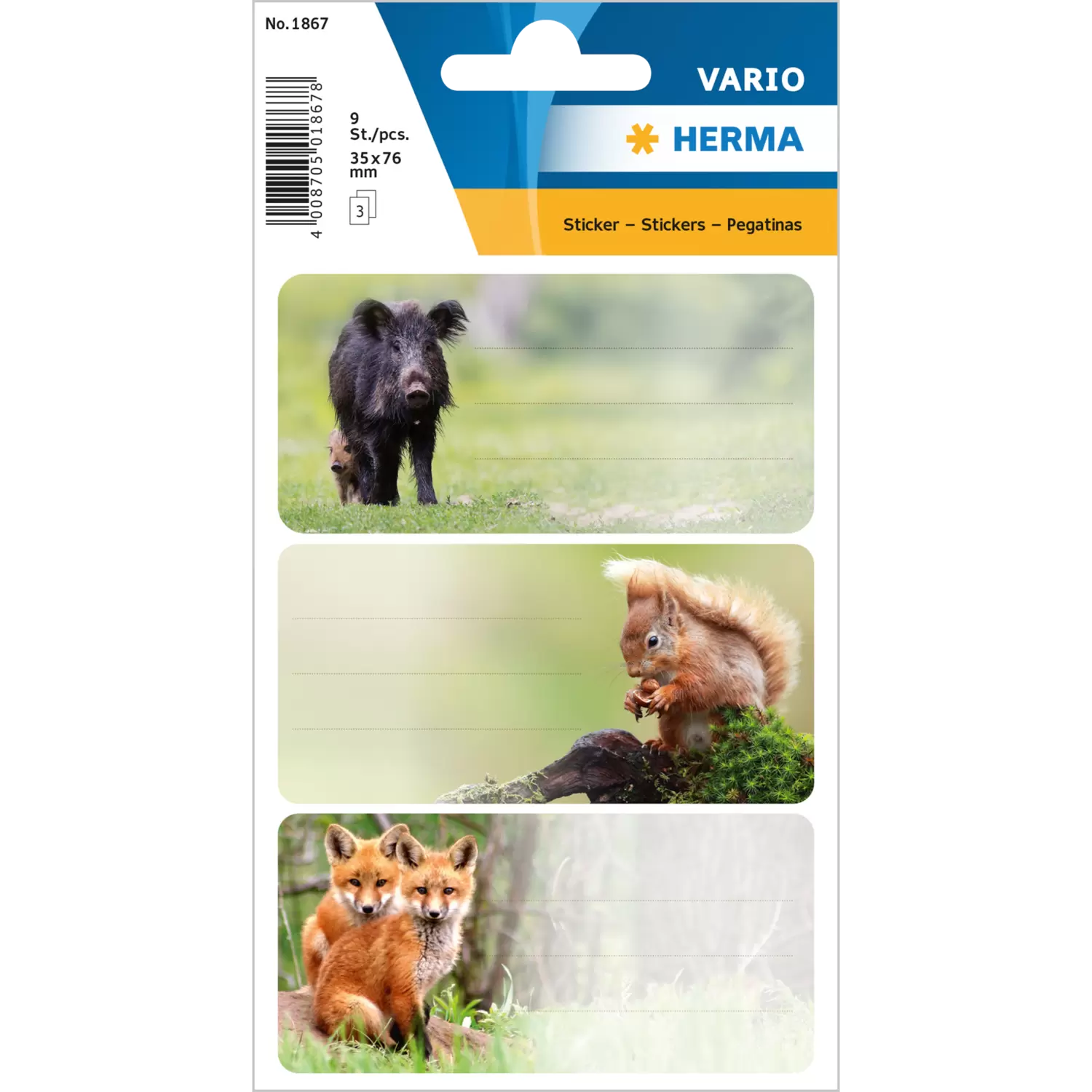 Pratiques et mignonnes, pour les amateurs d'animaux : l'écureuil drôle, le bébé sanglier avec sa maman et les gentils loups amuseront tous les enfants qui aiment partir en exploration dans la forêt. Ces belles étiquettes scolaires au format 76x35 mm combinent design et fonctionnalité parfaite. Il suffit d'étiqueter les autocollants auto-adhésifs en papier rapidement et facilement à la main, de les décoller, de les coller - et le tour est joué. Ainsi, on ne peut mélanger aucun livre et cahier à l'école, au jardin d'enfants ou entre amis.