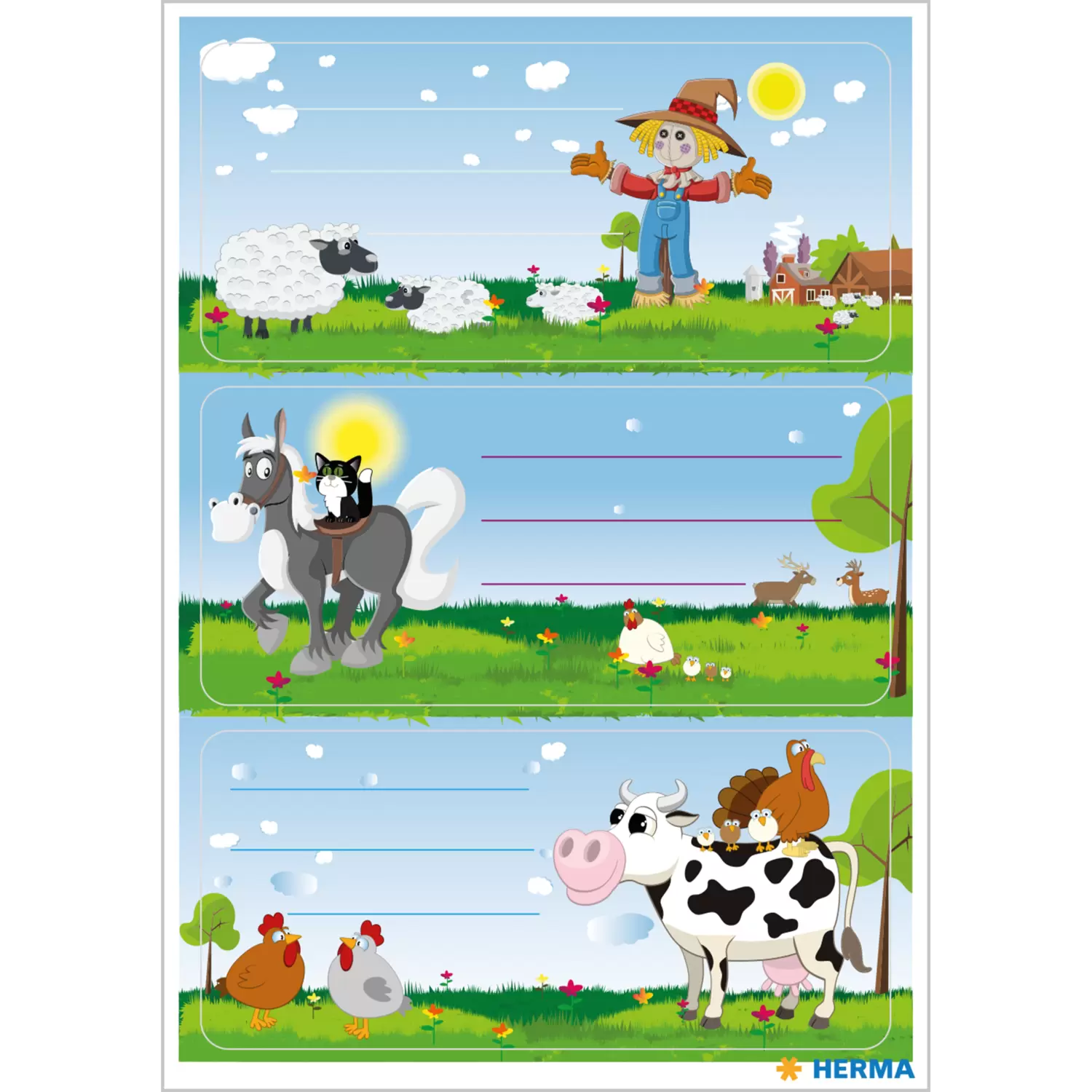 Pratiques et idéales pour tous les petits amateurs de la ferme qui préfèrent passer leurs vacances avec des chats, des vaches, des poulets et des moutons. Ces belles étiquettes scolaires au format 76x35 mm combinent un design mignon avec une fonctionnalité parfaite. Il suffit d'étiqueter les autocollants auto-adhésifs en papier rapidement et facilement à la main, de les décoller, de les coller - et le tour est joué. Ainsi, aucun livre et cahier à l'école, au jardin d'enfants ou entre amis ne peut être mélangé.