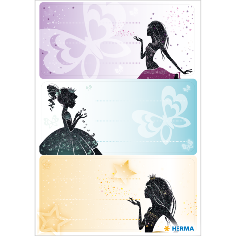 Pratiques, stylées et embellies avec de fines paillettes : idéales pour toutes les fans de princesses ! Ces étiquettes scolaires joliment conçues au design « Princesse » au format 76 x 35 mm allient design et fonctionnalité. Il suffit d’écrire à la main sur les autocollants en papier, c’est facile et rapide, de retirer le support, de les coller - et le tour est joué. Ainsi, on ne confondra plus aucun livre ou cahier à l’école, au jardin d’enfants ou entre amis.