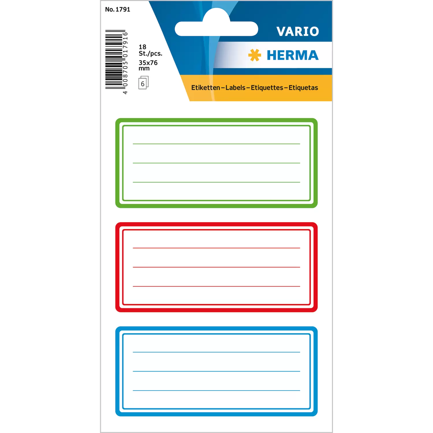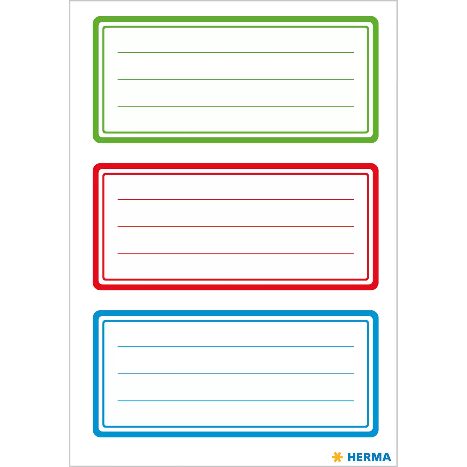 Étiquettes scolaires simples pour les filles et les garçons, 18 grandes étiquettes sur trois feuilles, fait de papier de haute qualité, particulièrement adaptées au marquage des produits scolaires comme les c ahiers, les protège-cahiers ou les livres, dans les couleurs vert, rouge et bleu, conviennent parfaitement pour l'école et la maternelle, auto-adhésive et adhérence particulièrement bonne