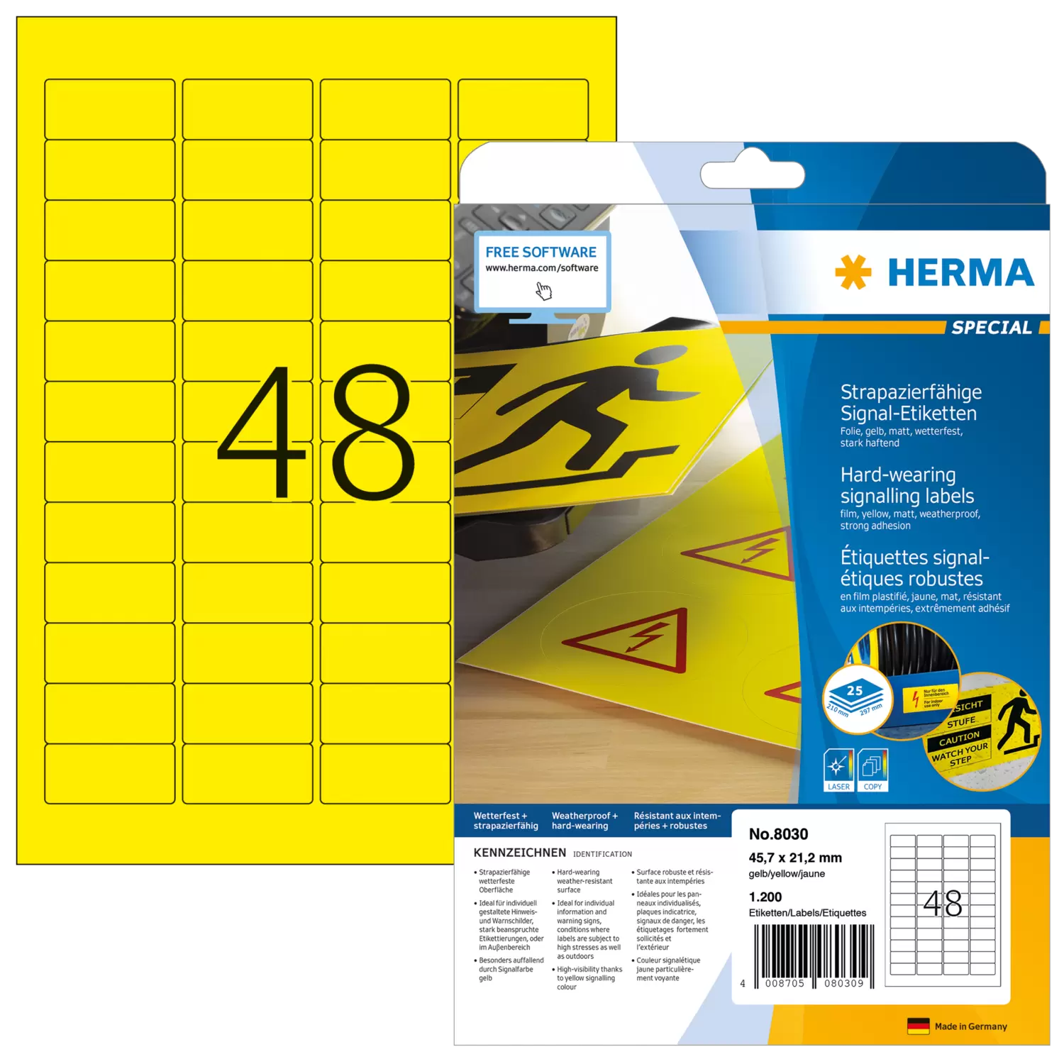 - Étiquettes jaunes en plastique sur feuilles A4, adhésives