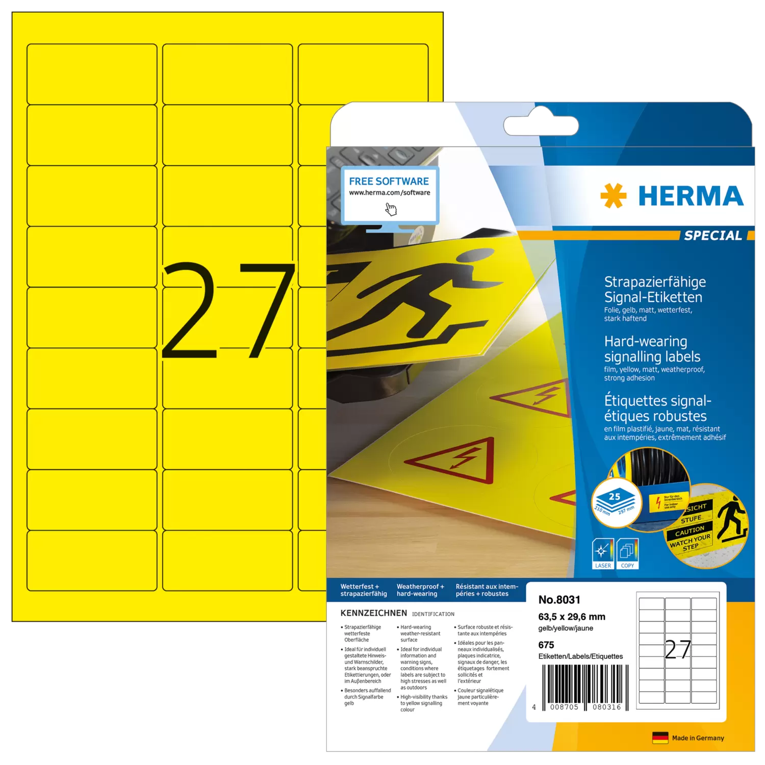 Étiquettes en plastique résistantes aux intempéries, jaunes, A4, 63,5 x 29,6 mm, ultra-adhérentes