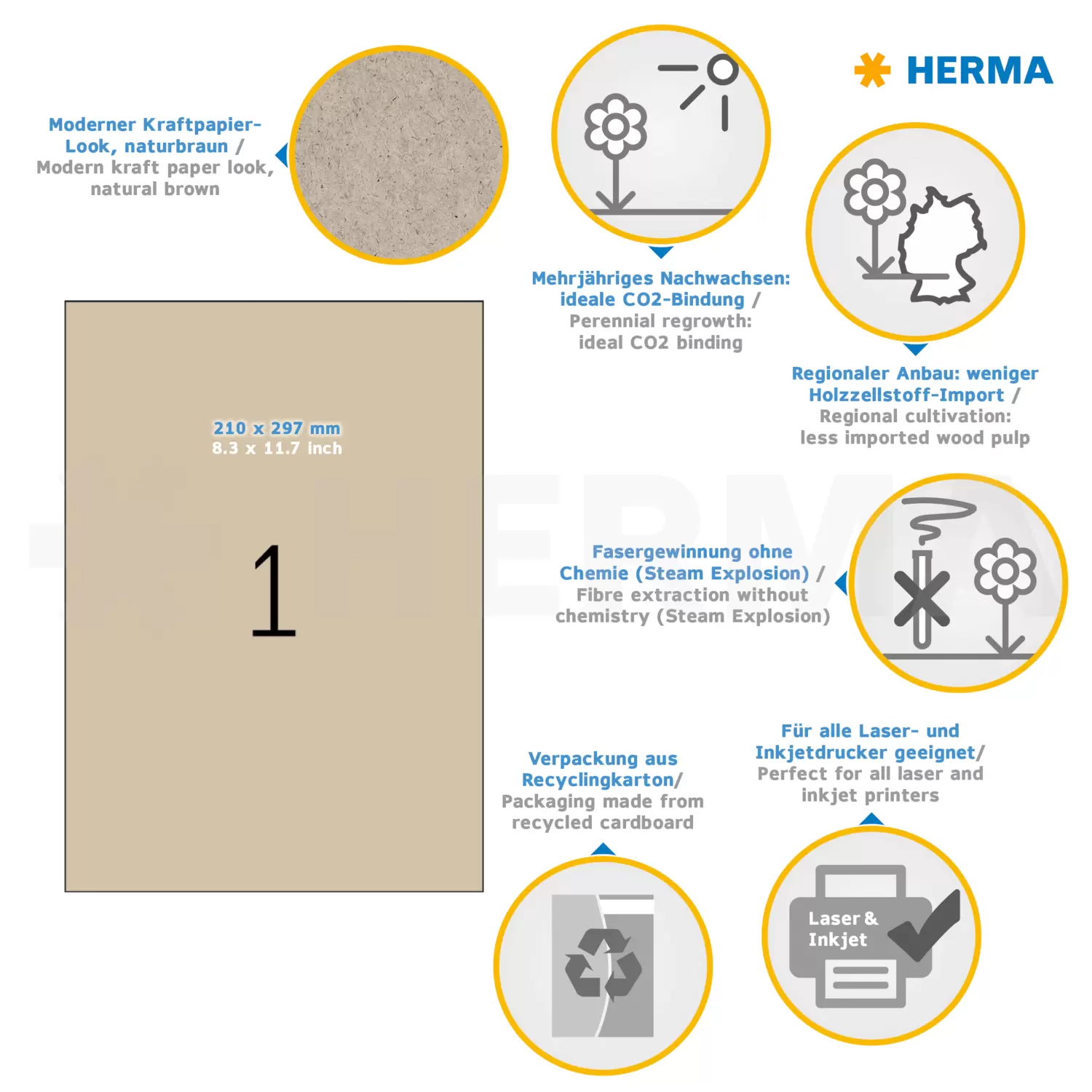 Étiquettes en papier de silphie, A4, 210 x 297 mm, brun naturel, adhérence permanente