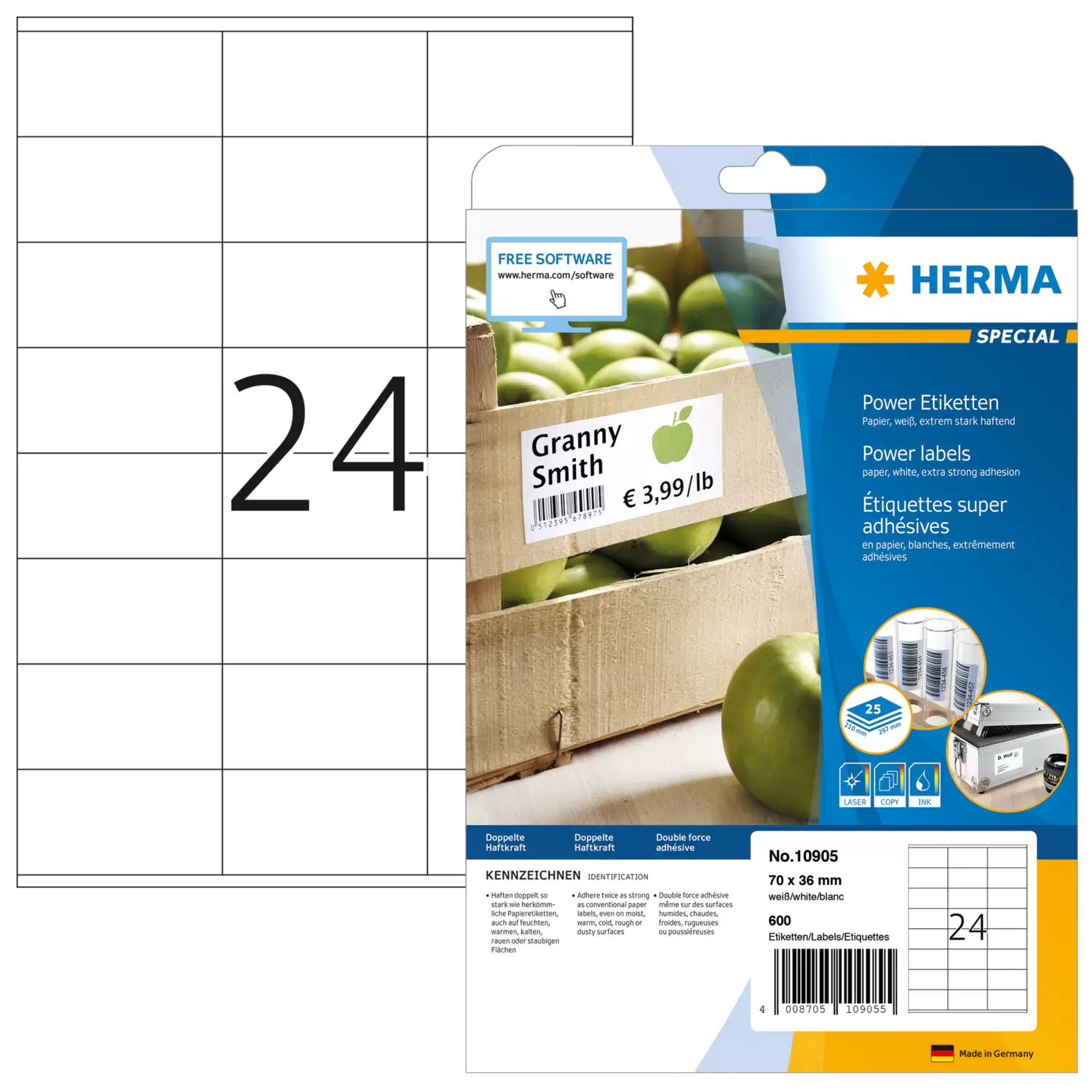 Étiquettes super adhésives, A4, 70 x 36 mm, blanches, en papier