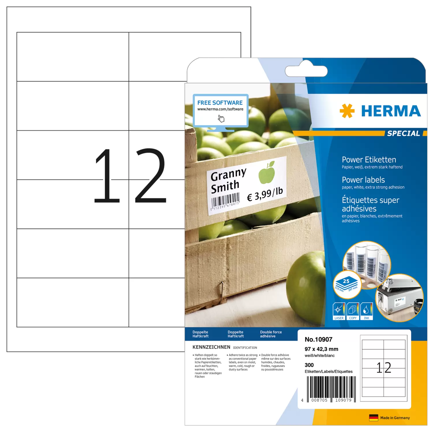 Étiquettes super adhésives, A4, 97 x 42,3 mm, blanches, en papier