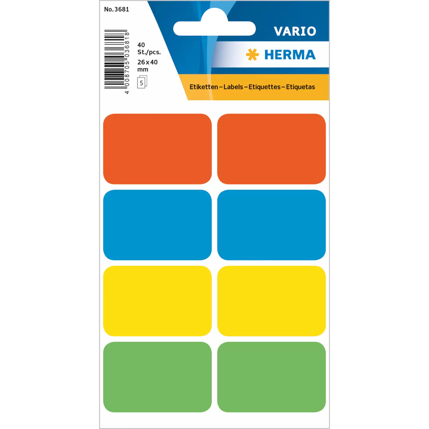 Étiquettes universelles 25 x 40 mm, couleurs assorties, adhérence permanente, pour l'inscription man