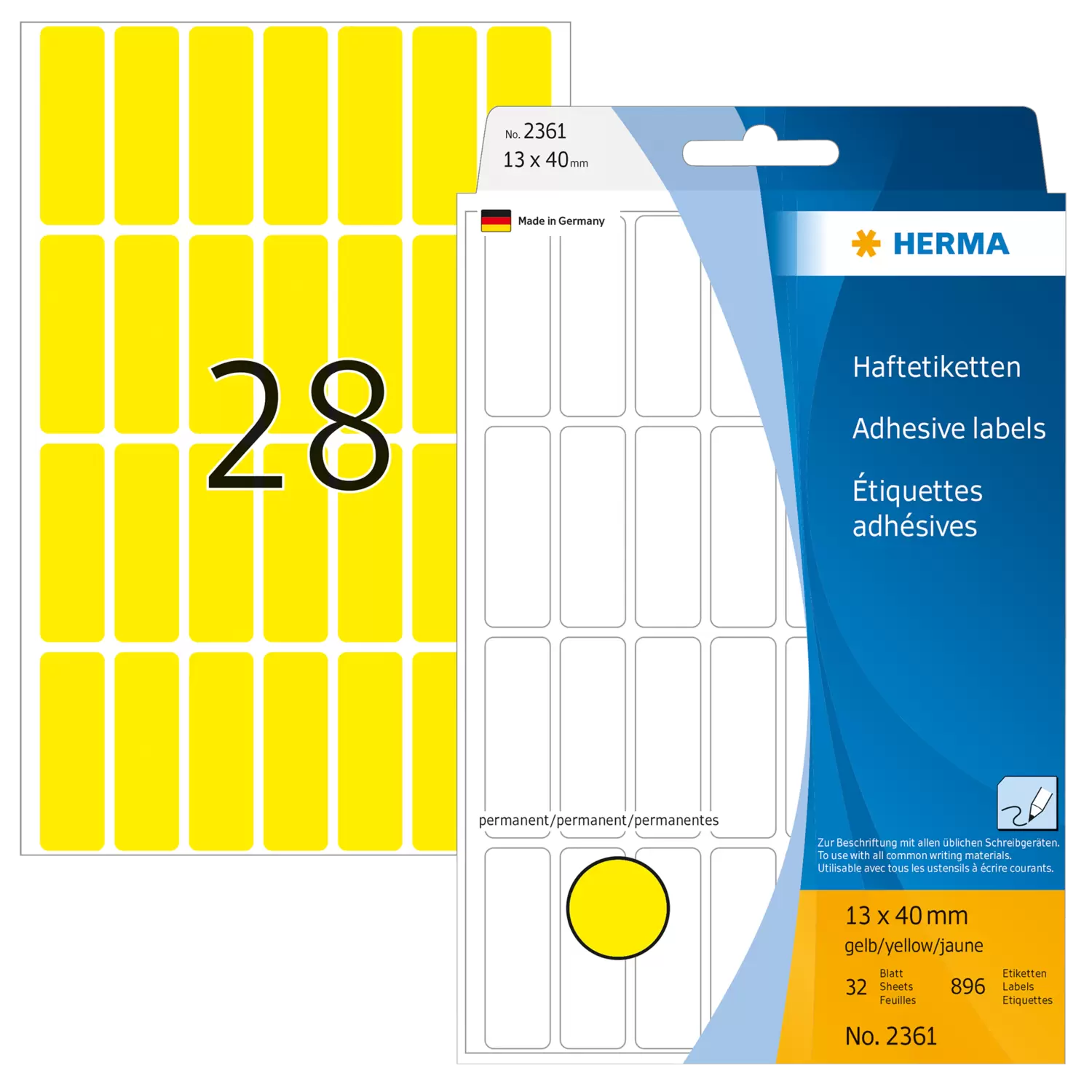 Étiquettes universelles 13 x 40 mm, jaunes, adhérence permanente, pour l'inscription manuelle