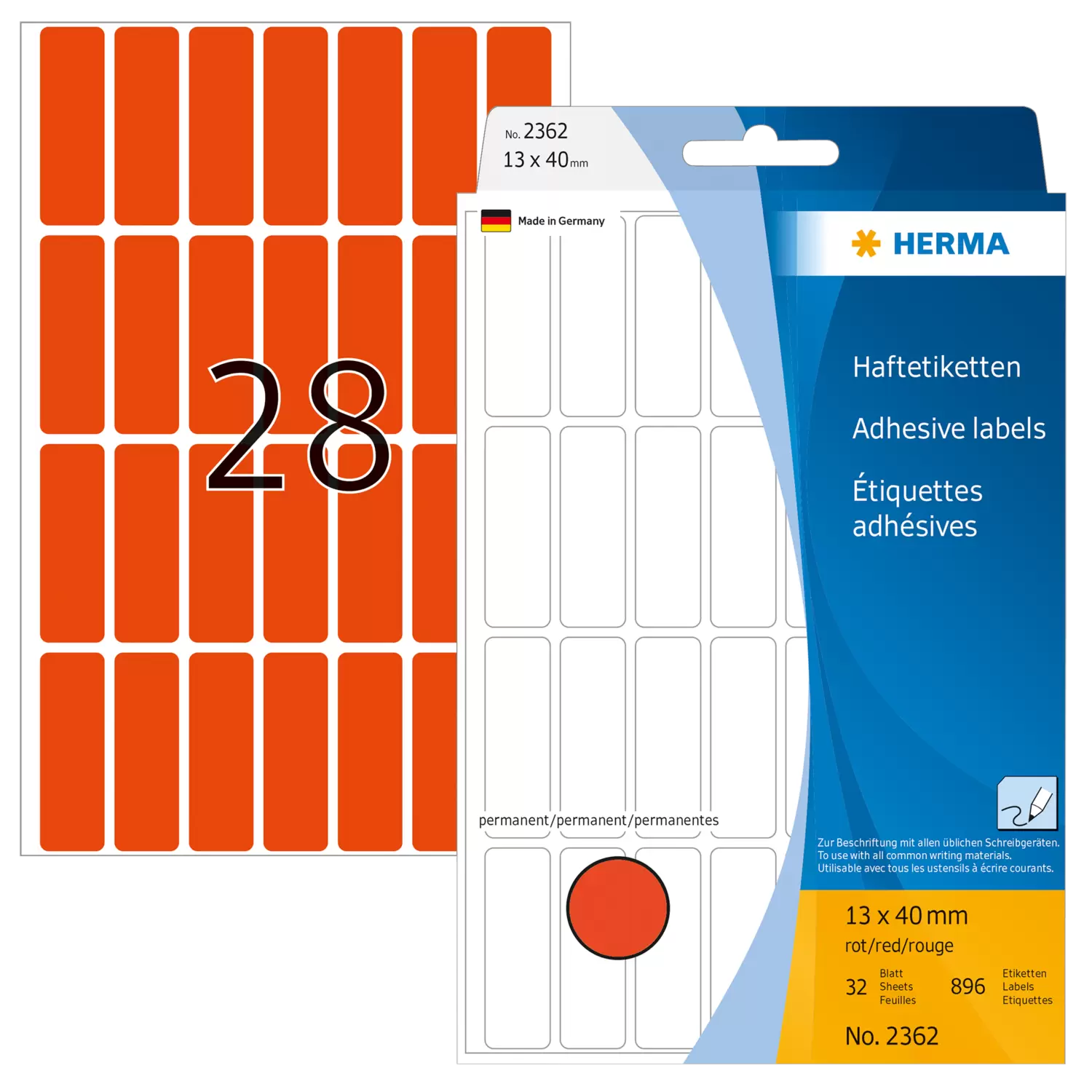 Étiquettes universelles 13 x 40 mm, rouges, adhérence permanente, pour l'inscription manuelle