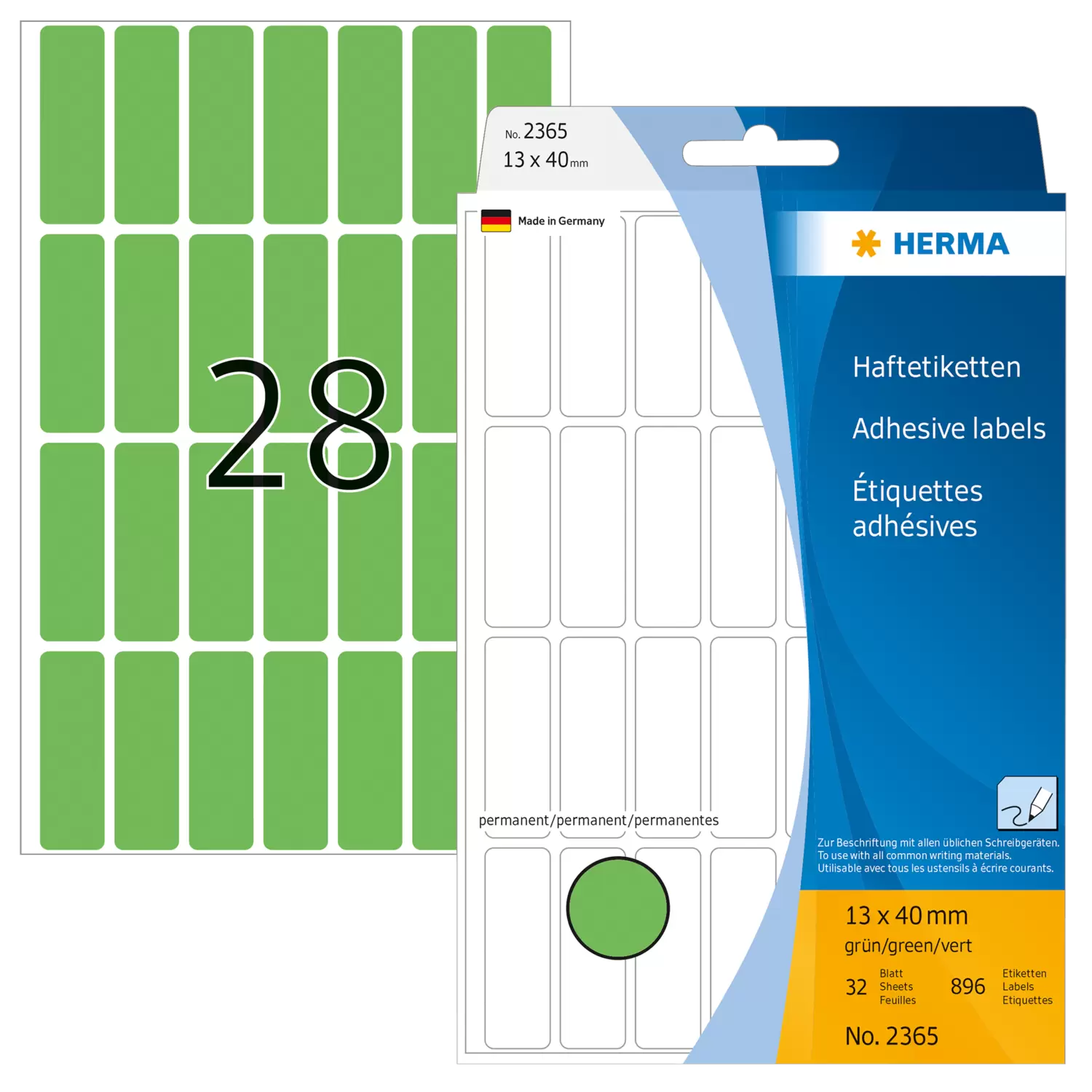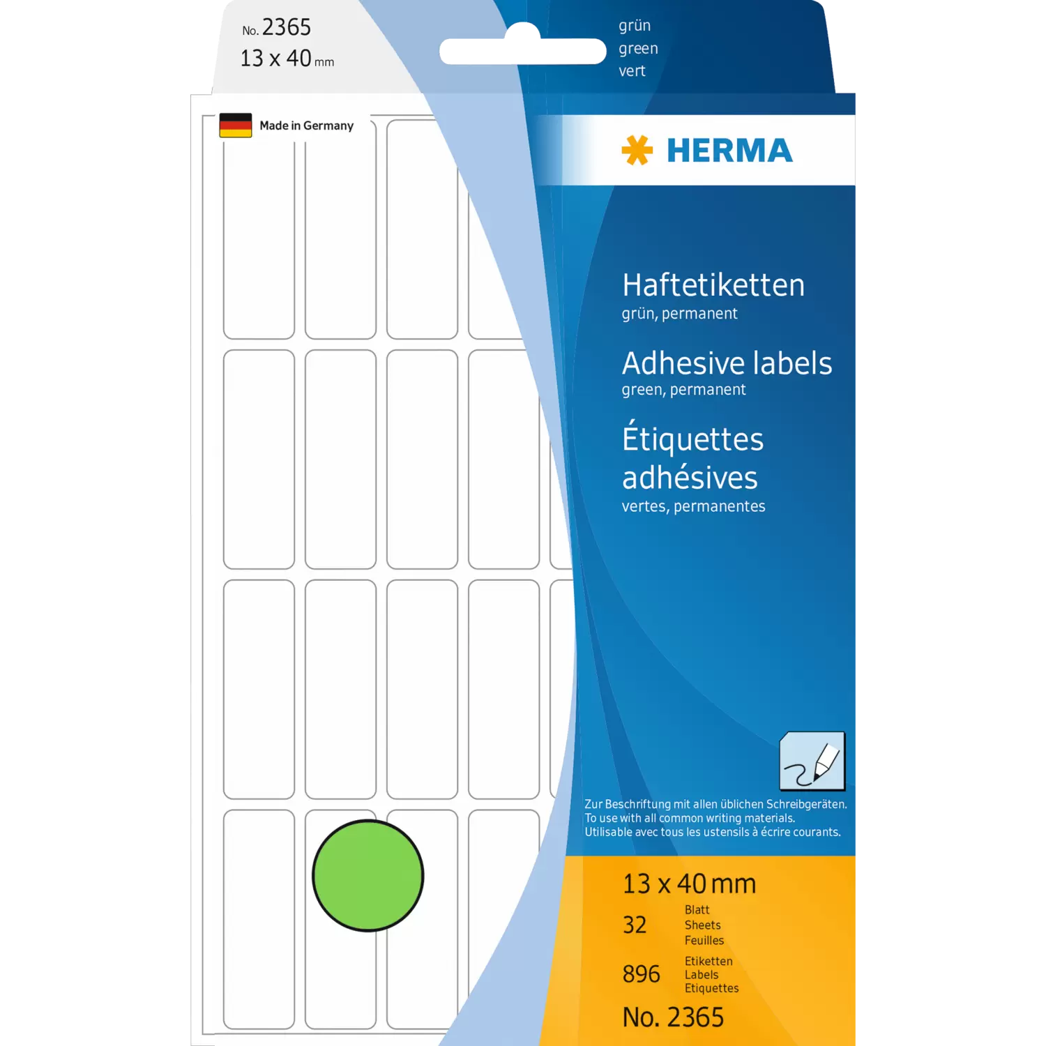 Étiquettes universelles 13 x 40 mm, vertes, adhérence permanente, pour l'inscription manuelle