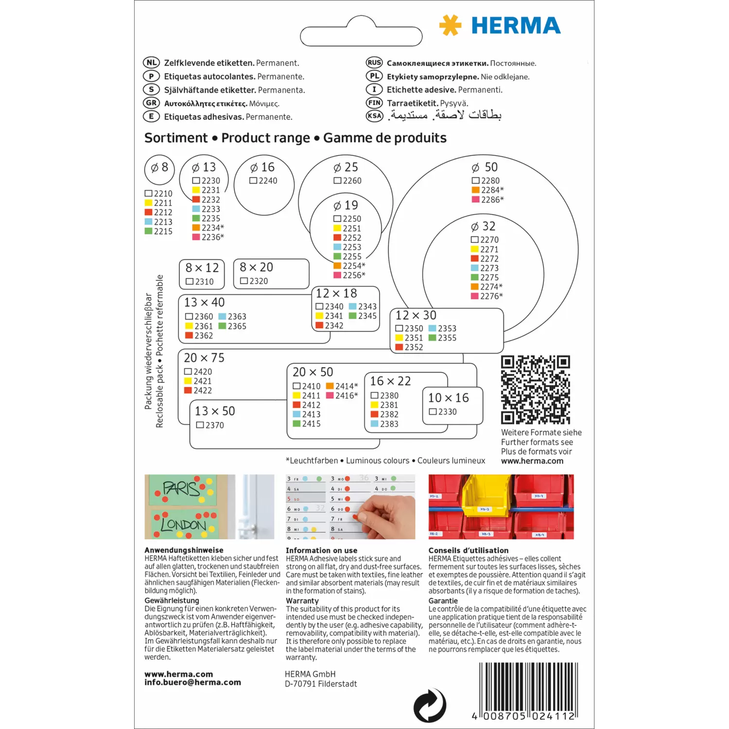 - Les étiquettes adhésives universelles peuvent être remplies avec toutes les machines à écrire courantes mais ne con viennent pasà une impression au PC