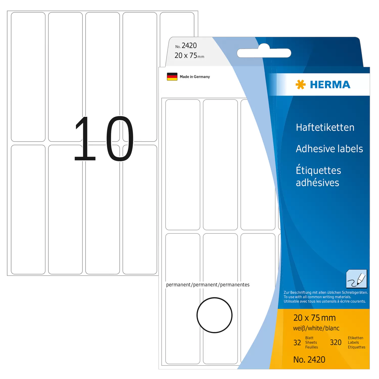 Étiquettes universelles 20 x 75 mm, blanches, adhérence permanente, pour l'inscription manuelle