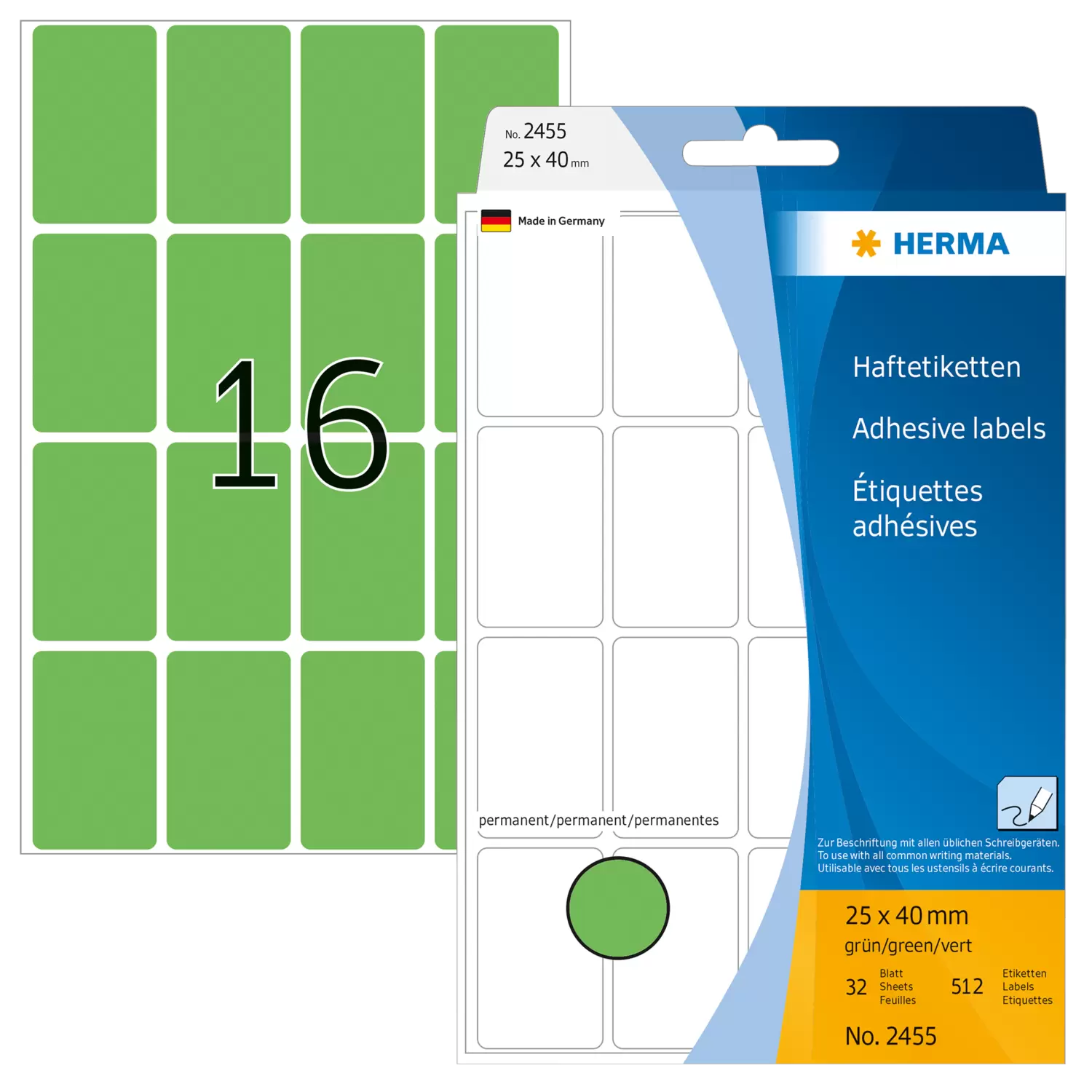 Étiquettes universelles 25 x 40 mm, vertes, adhérence permanente, pour l'inscription manuelle
