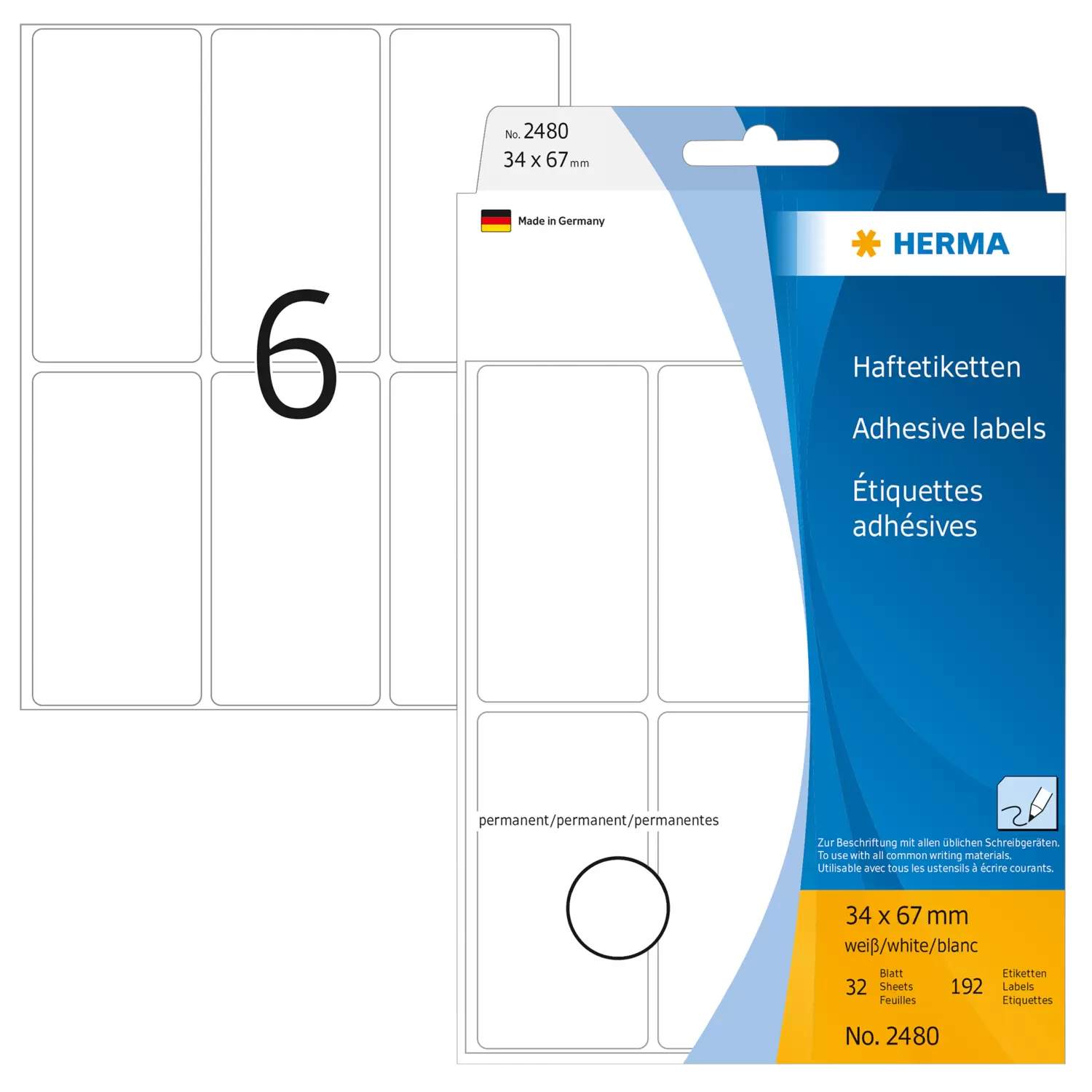 Étiquettes universelles 34 x 67 mm, blanches, adhérence permanente, pour l'inscription manuelle