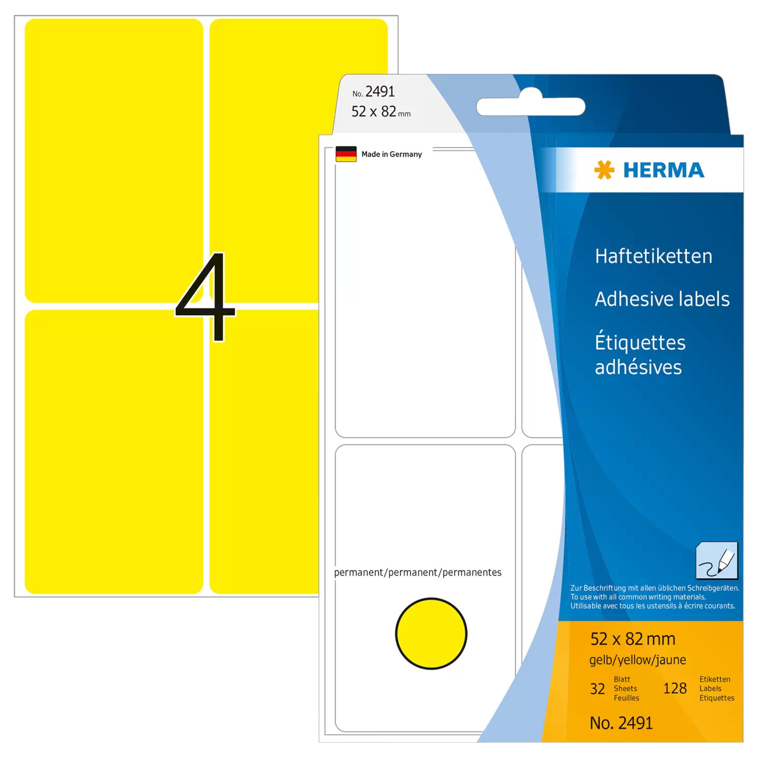 Étiquettes universelles 52 x 82 mm, jaunes, adhérence permanente, pour l'inscription manuelle