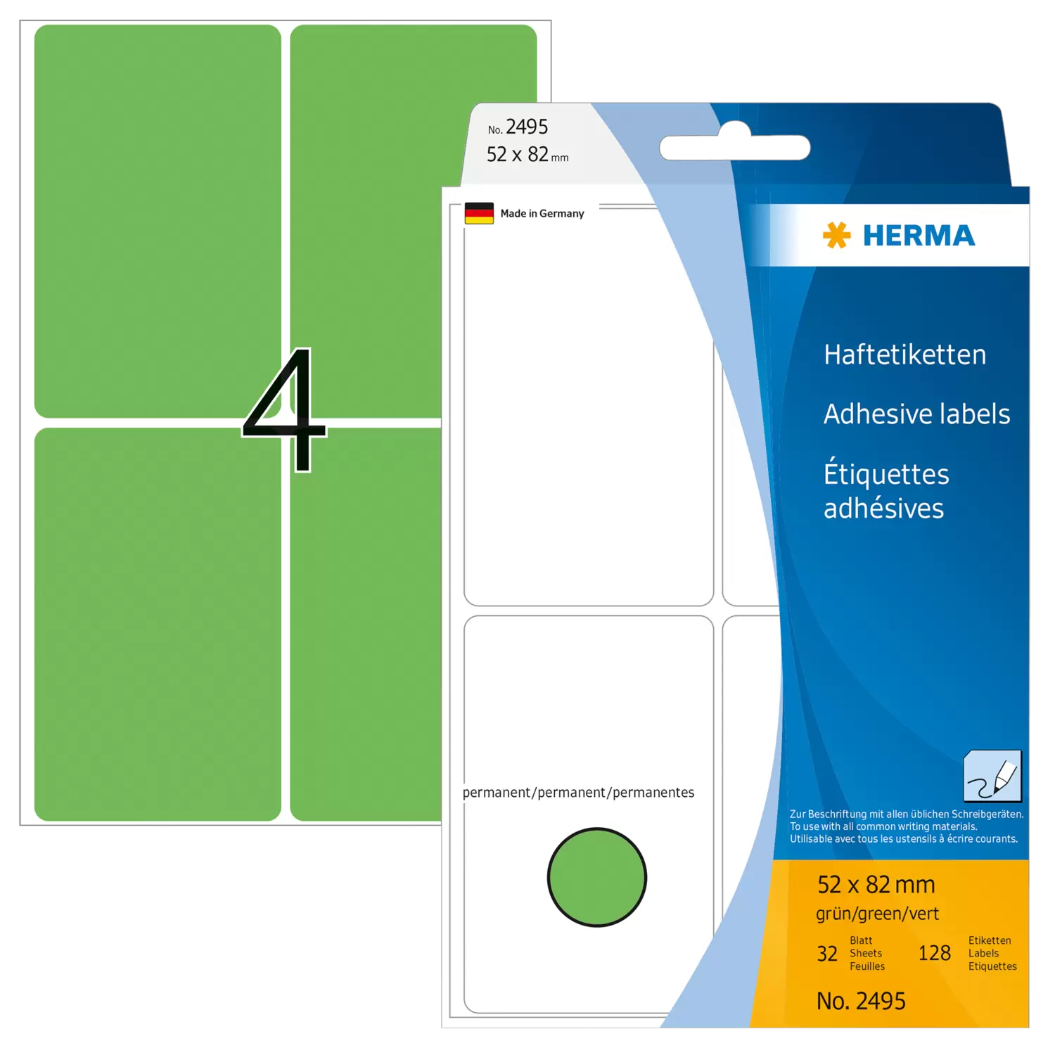 Étiquettes universelles 52 x 82 mm, vertes, adhérence permanente, pour l'inscription manuelle