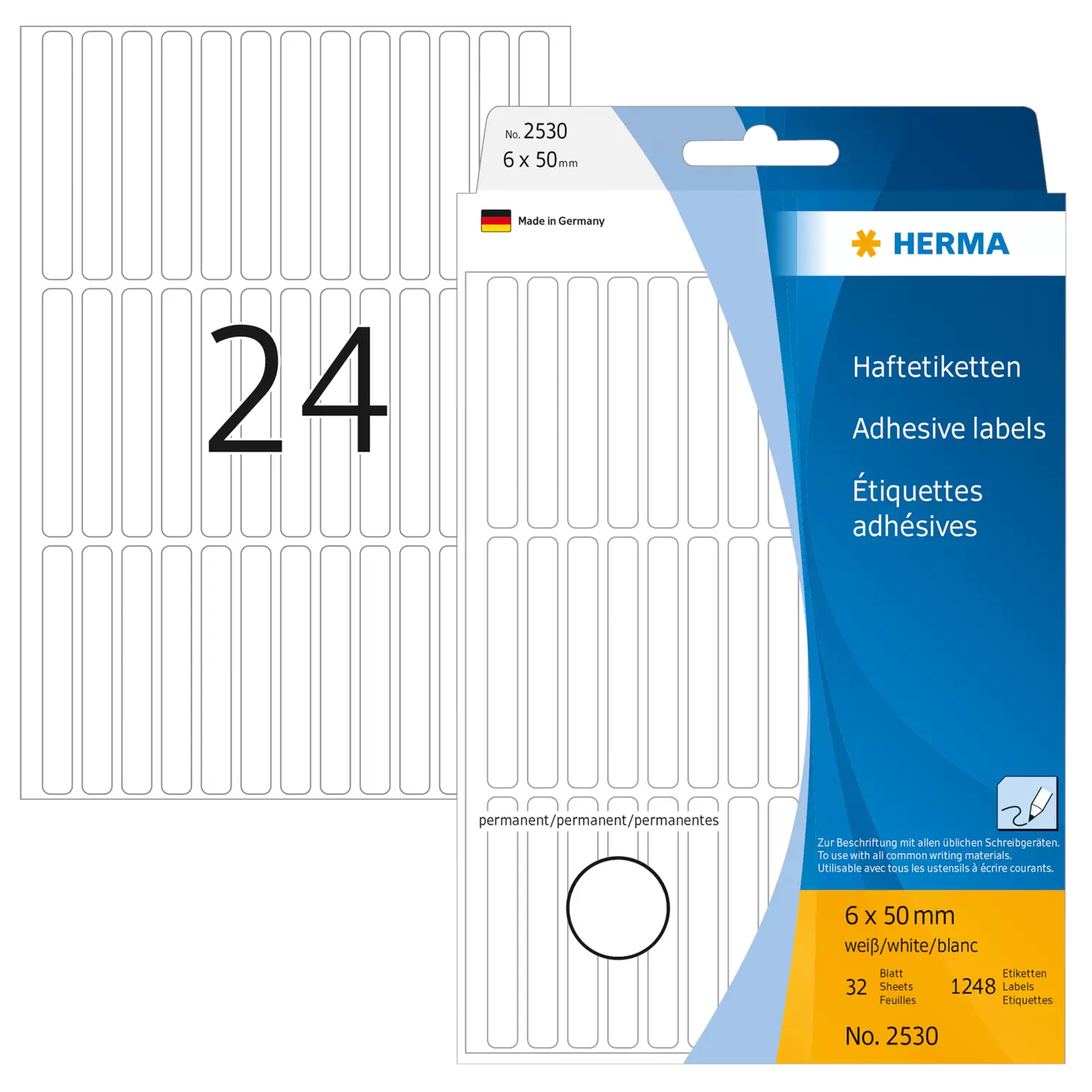 Étiquettes universelles 6 x 50 mm, blanches, adhérence permanente, pour l'inscription manuelle
