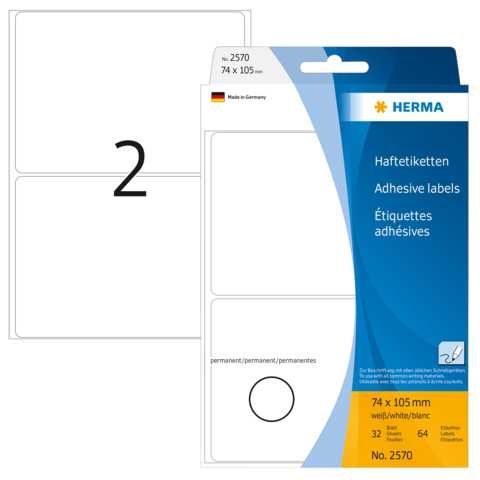 Étiquettes universelles 74 x 105 mm, blanches, adhérence permanente, pour l'inscription manuelle