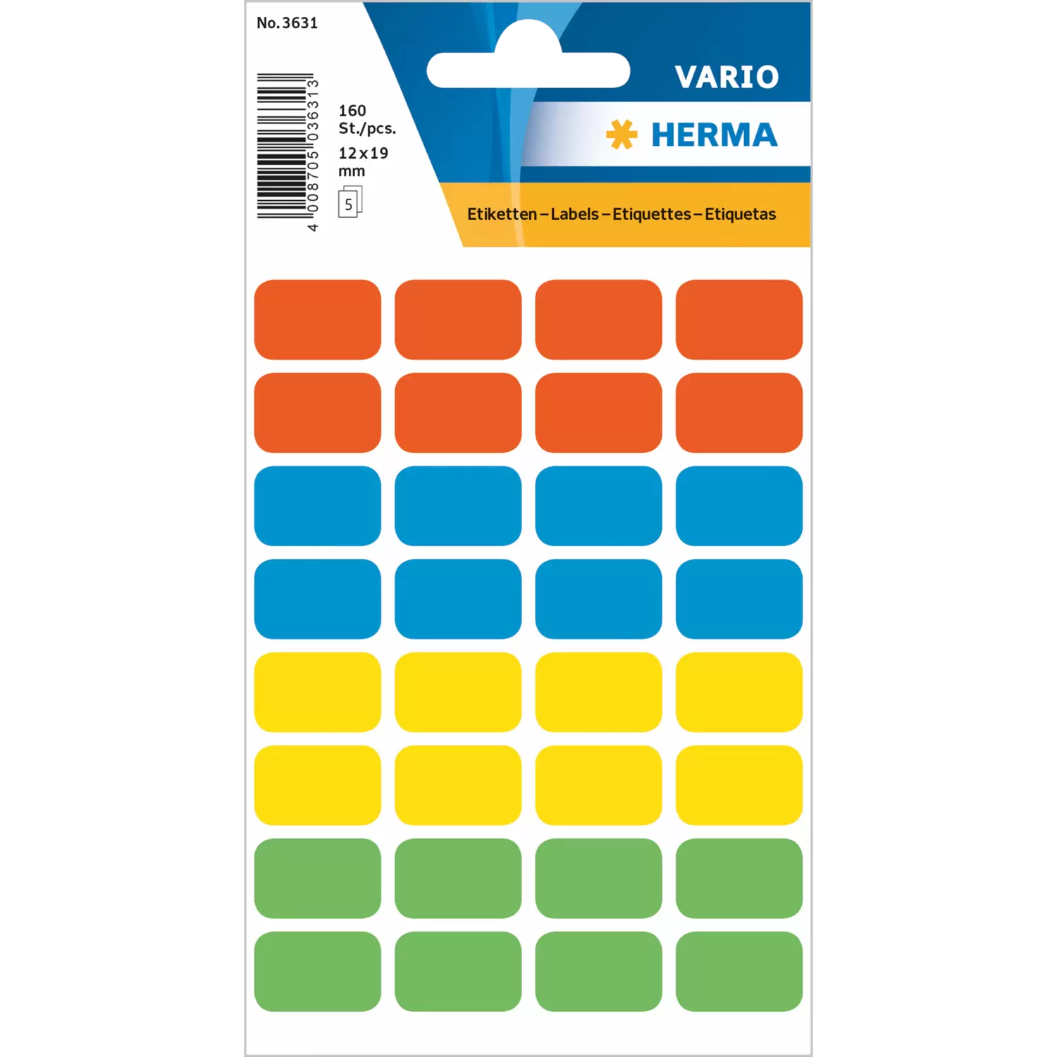 Étiquettes universelles 12 x 18 mm, couleurs assorties, adhérence permanente, pour l'inscription man