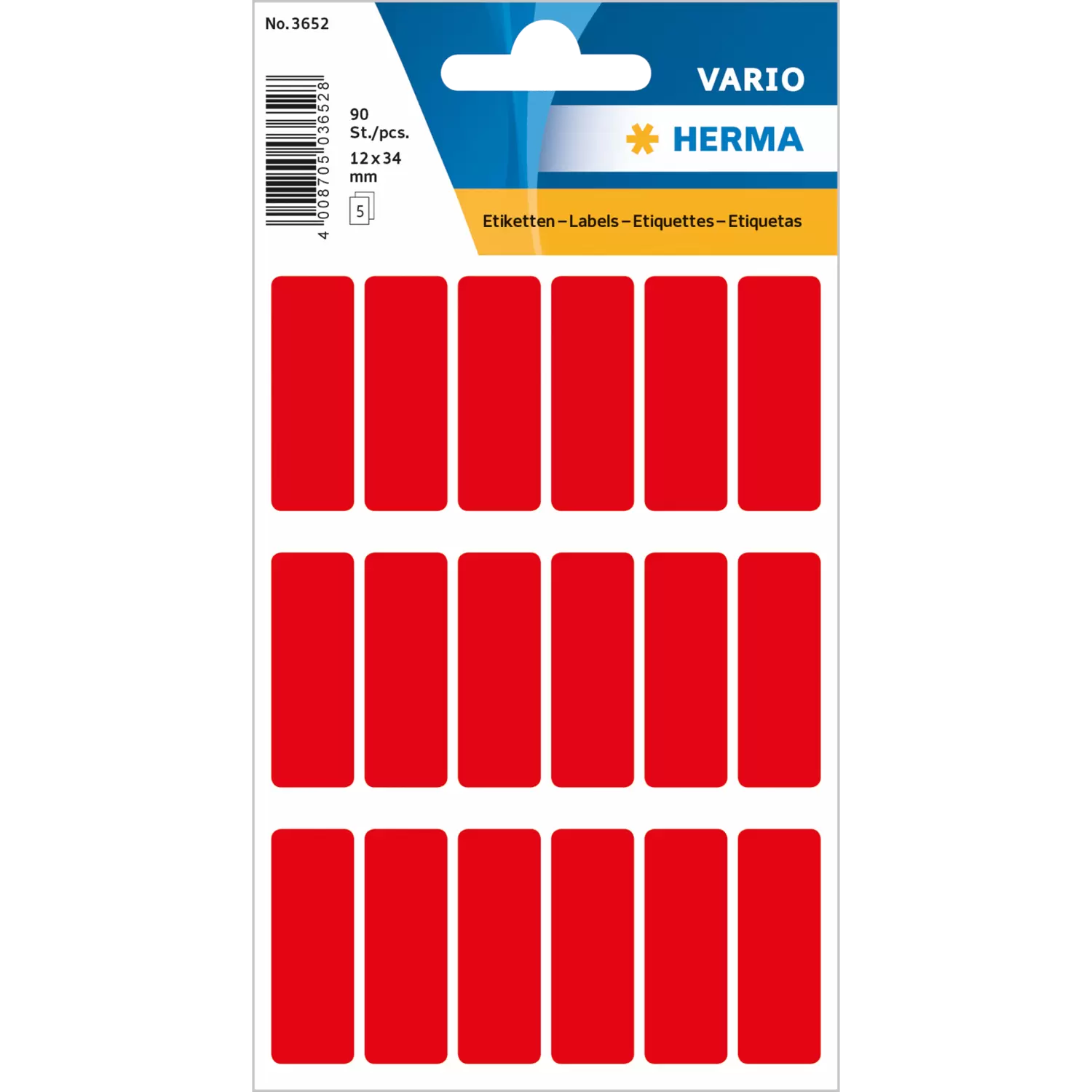 Étiquettes universelles 12 x 34 mm, rouges, adhérence permanente, pour l'inscription manuelle